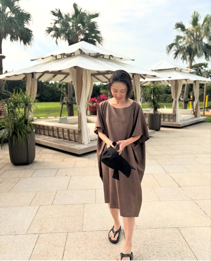 【石垣島】大人の“ちょうどいい”リゾートコーデ。THE ROWのワンピース×ワークマンのパンツ/川口ゆかり