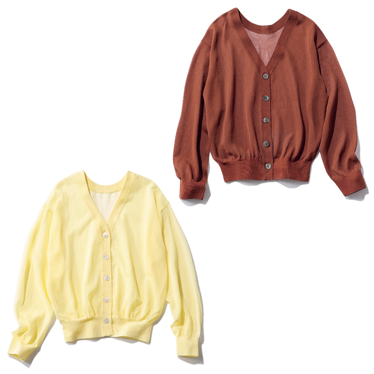 トレンドのシアー素材を使ったニットカーディガンは、プルオーバーとしても着られる前後2WAY仕様。極細のレーヨンにナイロンをプラスした表情のある糸を使っているため、さらりと肌離れのいいドライタッチで、汗ばむ季節に最適です。明るいブラウンのようなレッドクレイは、LEEだけの別注カラー。ほかにやわらかいムードのパンナコッタも。