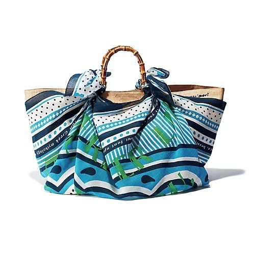 軽やかなラフィアとバンブーハンドルを組み合わせたビッグバッグに、マニプリで人気のストールをセット。バッグ上部に施された、手描き風のロゴも可愛いアクセントとしてきいています。ストールにはデイジーのような花模様とともに「Wherever life plants you bloom with grace=どこに植えられても優雅に咲きほこれ」という前向きなメッセージがプリントされています。