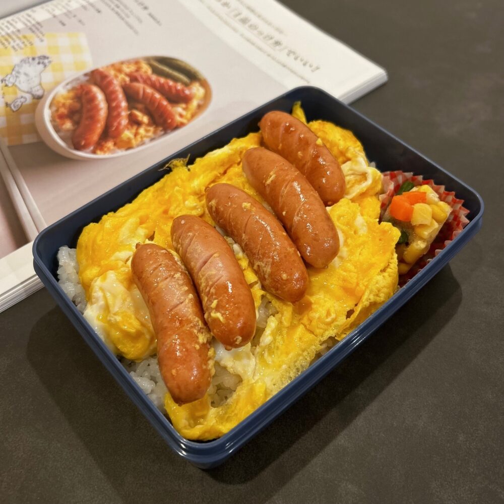 「『調理時間5分!?』。目に付いたのは、『3品どころか「1品のっけ弁」でいい!』から藤井 恵さんのレシピ『ウインナ卵のっけ弁』。ウインナーと卵は常にストックしているし、調味料も身近にあるものばかり。早速、作ってみました♪