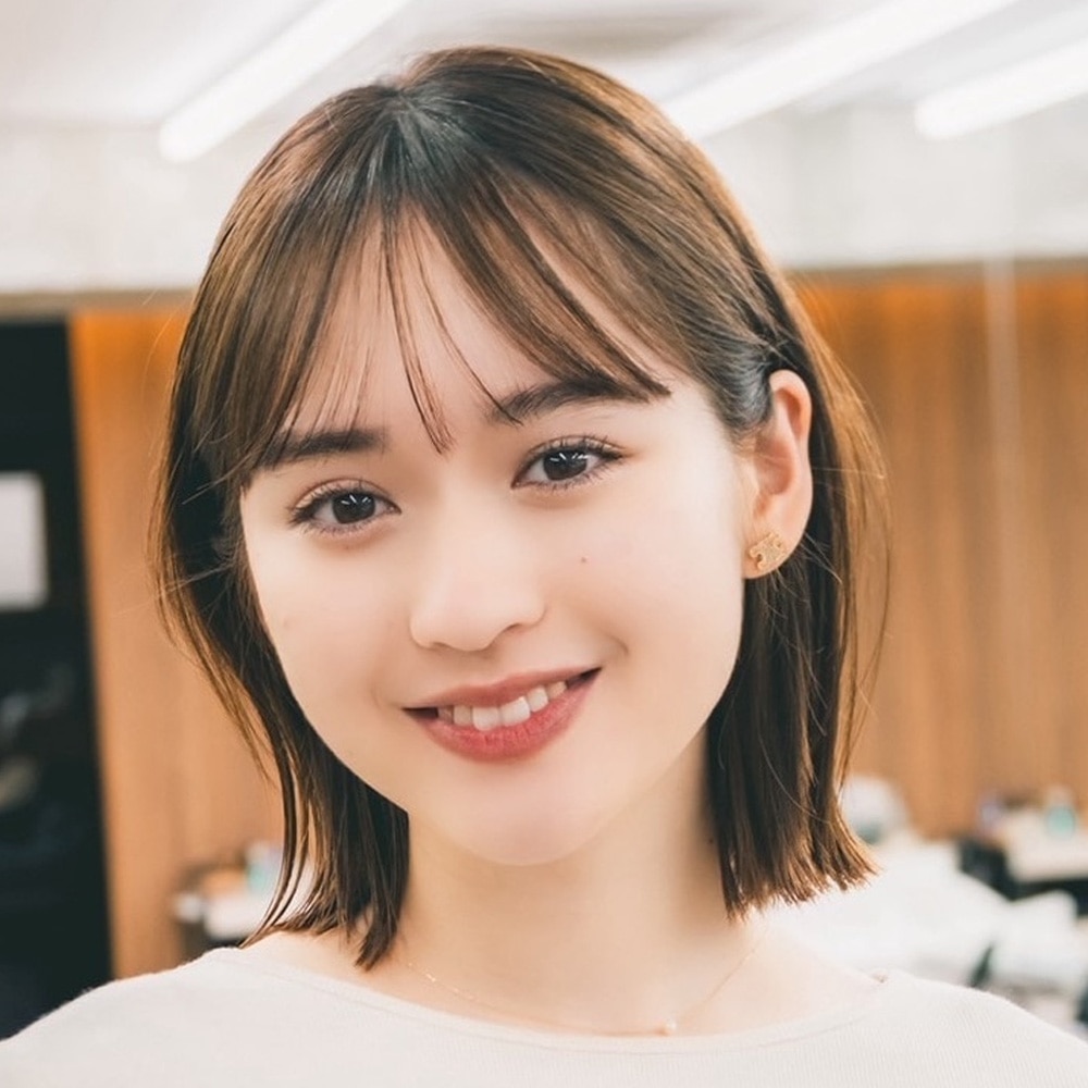 薄めのシースルーバングにして髪の柔らかさを出します。少しワイドに切ることで面長さんにも似合います。