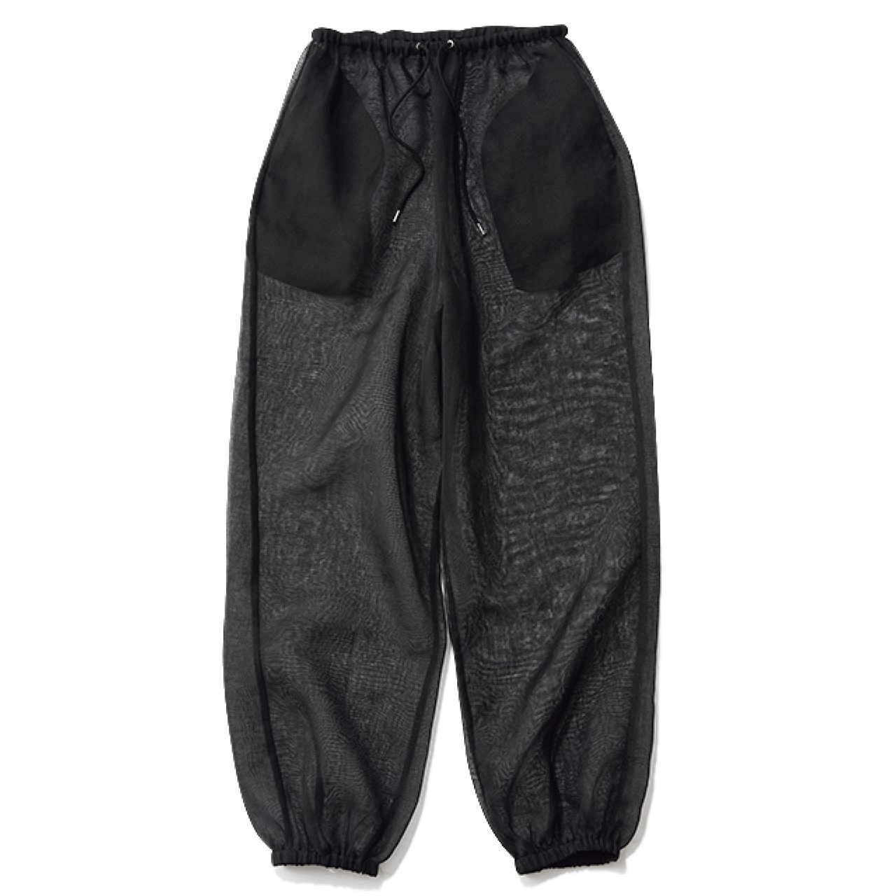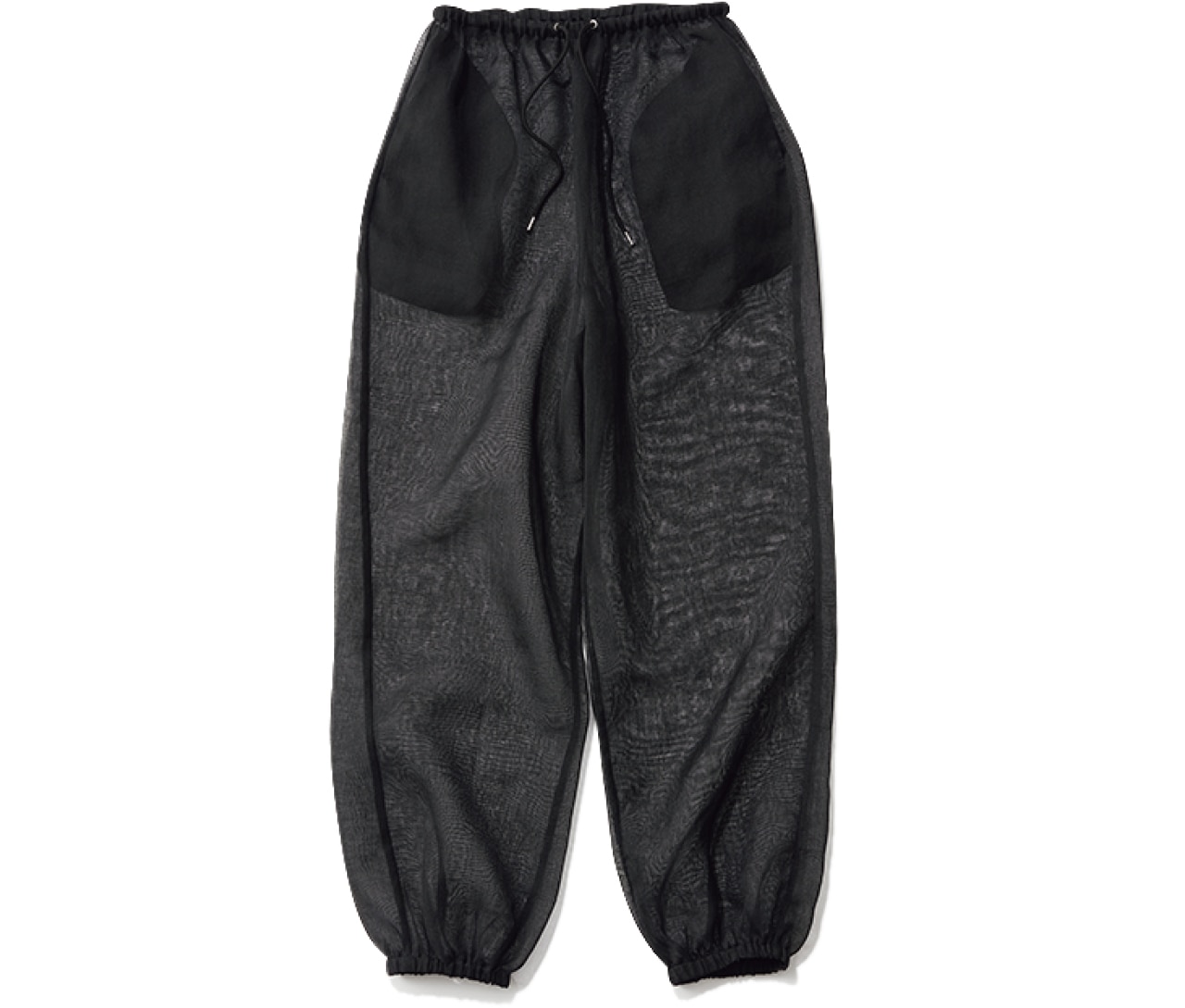 シアーブームの波はトップスだけでなくボトムにも到来! ふんわりふくらんだバルーンシルエットがキュートな裾絞りの透けパンツは、手持ちのデニムやチノパン、スウェットなどに重ねるだけで最先端のスタイリングが楽しめるアイテム。風通しよく見た目も涼しげなので、夏場のレイヤードに重宝します。両サイドにはポケット付きで、実用性も十分。