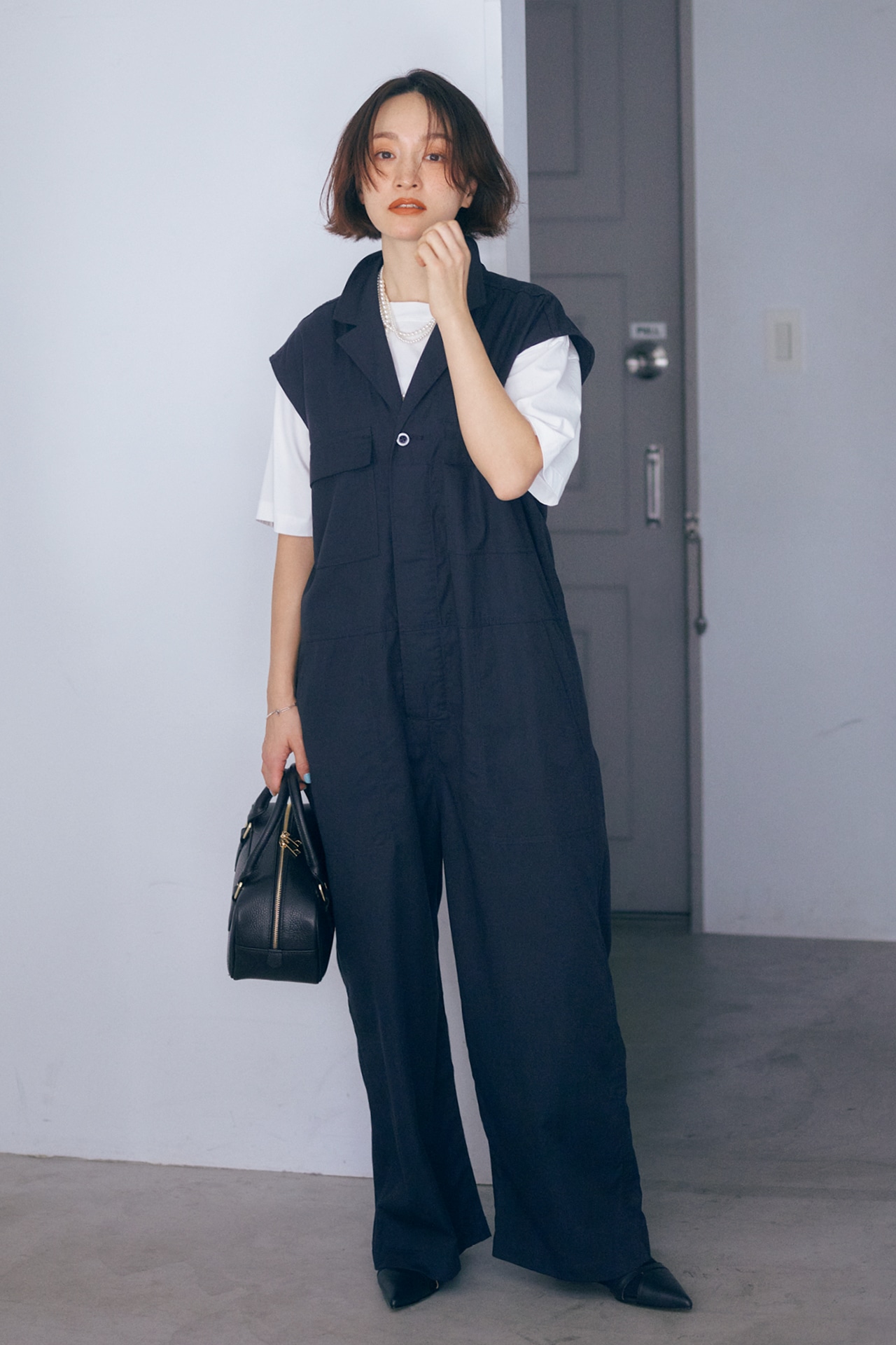 端正な深いネイビーだから、白Tを入れてもきちんと感のある着こなしに着地します。