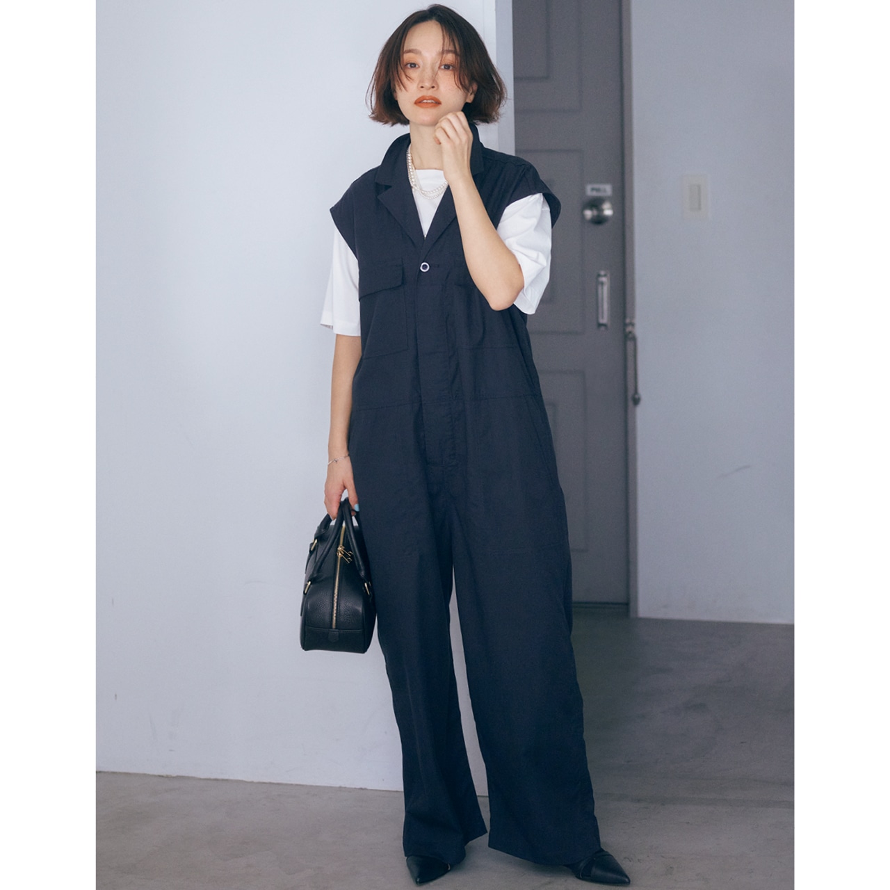 微光沢としなやかな落ち感を持つリヨセル混生地で仕立てられた、きれいめ感のあるコンビネゾン。二の腕をカバーしてくれるフレンチスリーブに、深Vの開衿デザインと、ちょっぴりクラシカルなフォルムがおしゃれ感満点! ウエストから下はすとんと落ちるゆったりシルエットで、立ち姿も美しく。インナーを重ねてアレンジしても◎。洗濯機洗い可能。