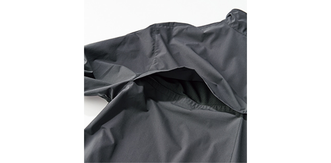 背中部分は熱を逃がすベンチレーション仕様になっているため、汗ばむ真夏でも風通しよく涼しい着心地。