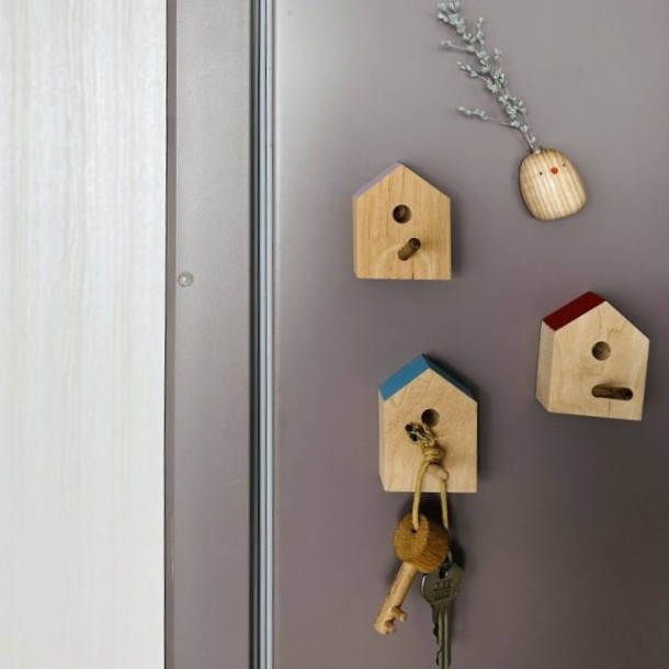 「今回はドライフラワーを飾ろう!と思い、マグネット付きの小鳥の一輪挿しを。一緒に写っているお家や、鍵のキーホルダーもflangeのものです。かわいいデザインだけでなく、ちょこっと買えちゃうお値段なのも、これまた憎い♡