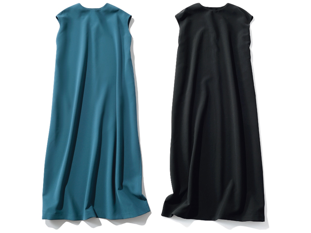2年前のリリース以来、大好評を集め続けるワンピースに、これからの季節に最適なフレンチスリーブタイプが登場。適度なハリと落ち感がある素材を使ったコクーンシルエットが、体をゆったりとおおい、ボディラインを自然にカバーします。シワになりにくく、自宅でのケアが可能なのもうれしいポイント。定番のブラックと肌を美しく見せる青みグリーンの2色、体型や好みに合わせて選べる2丈展開です。