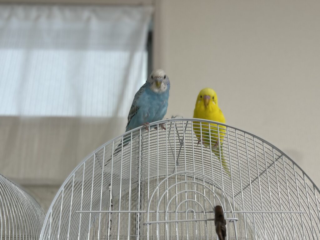 元気すぎてケージから出してほしいと毎日猛アピール、放鳥の時はわたしから離れずトイレまでついて来ようとし、お出かけをすると悲しそうな顔をして呼び鳴き……きいちゃんのストーカー行為とお出かけ時の寂しそうな呼び鳴きに少し息がつまってきました。鳥は集団で行動する習性があるので1羽だけだとかわいそうに思えてきて2羽目を飼うことにしました。