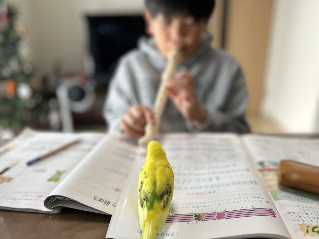 人間が居れば「遊んで遊んで」と2羽が肩に乗ってきます。でも家族全員がお出かけしようとすると2羽がお互いを意識して寂しくなさそうです。きいちゃんが寂しくないことがわたしの気持ちを楽にしてくれました。