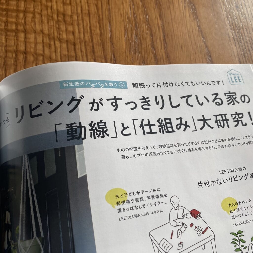 「LEE5月号『リビングがすっきりしている家の「動線」と「仕組み」大研究!』に注目。わが家はふたり暮らしなのですが、共同で使うリビングはなるべくすっきりさせたい!と日々思っています。