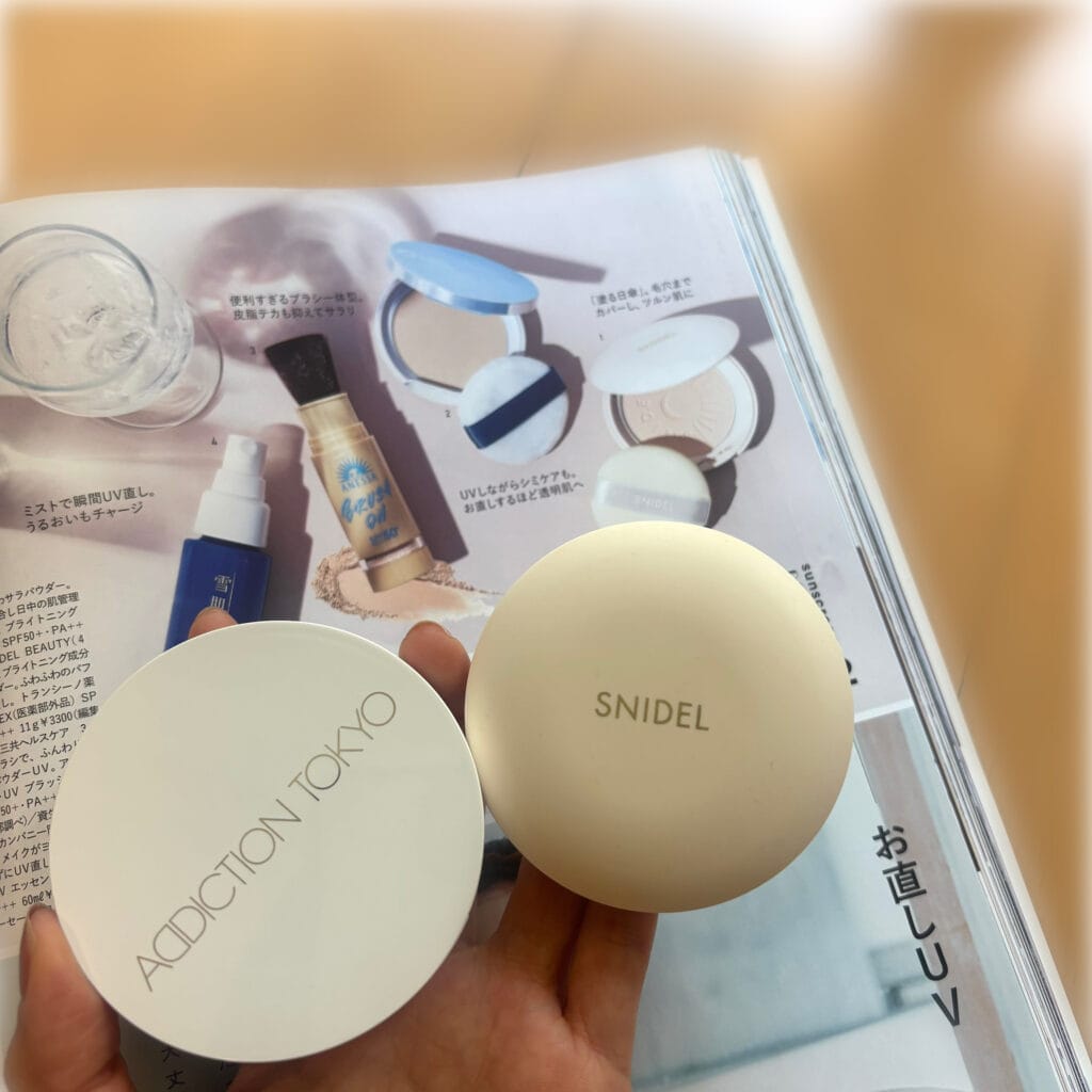 「お直しUVページにも載っていたSNIDELのブライトニング UV パウダー、去年買ってとても使いやすかったので、今年も愛用します。あとは、個人的おすすめはADDICTIONのタッチアップクッション。クッションファンデのように手軽に上からポンポンでお直しできる上に、疲れた日中の肌にみずみずしさもONできます♪」