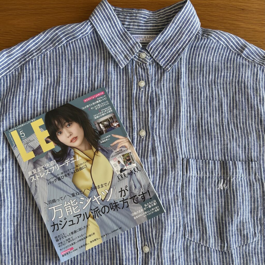 「LEE5月号『『万能シャツ』がカジュアル派の味方です!』ではたっぷりとシャツの魅力や着回しについて30ページにわたり紹介されています。