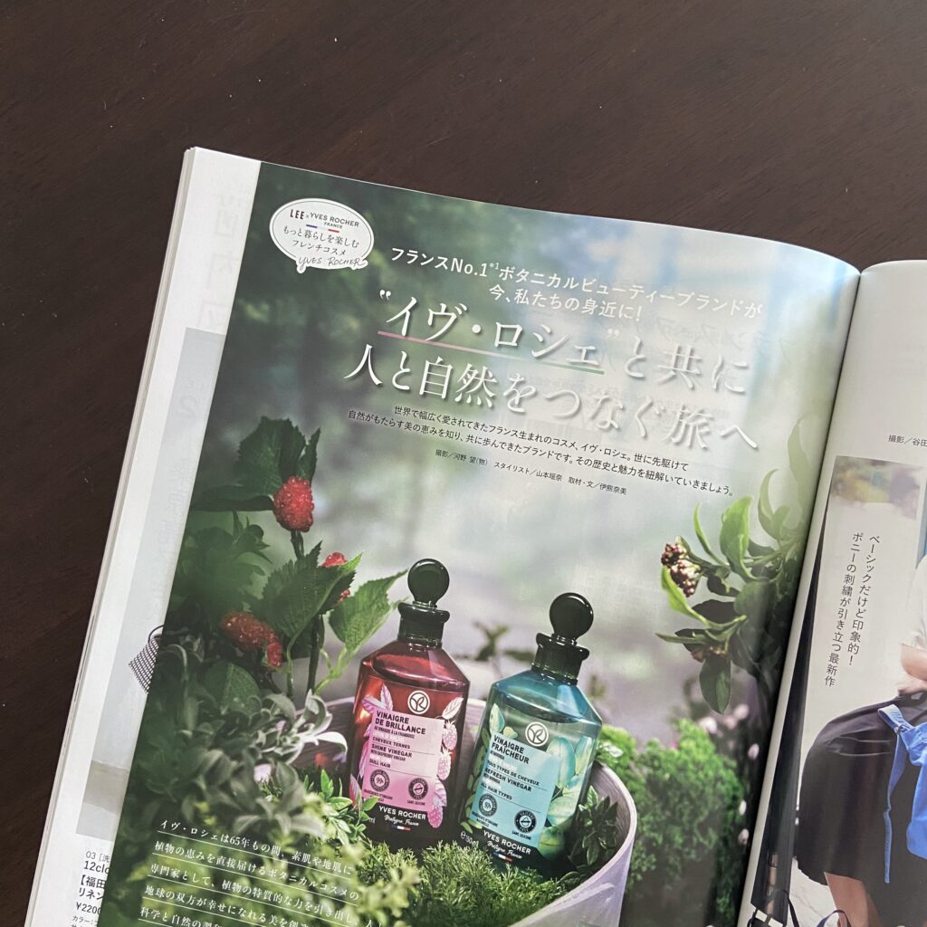 「LEE5月号『“イヴ・ロシェ”と共に人と自然をつなぐ旅へ』の特集に注目。この度、LEE100人隊『ロシェ活部』がスタートしました! 自然由来成分にこだわった商品作りを続けているイヴ・ロシェの魅力を少しでも多くの方に知っていただけるよう、がんばって活動していきます。