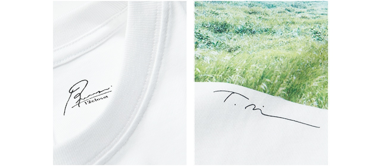 (右)フォトの下には写真家・酒井貴生さんのサイン入り。(左)浅見さんコラボアイテム限定の「Reina」シグネチャーもチェックを!