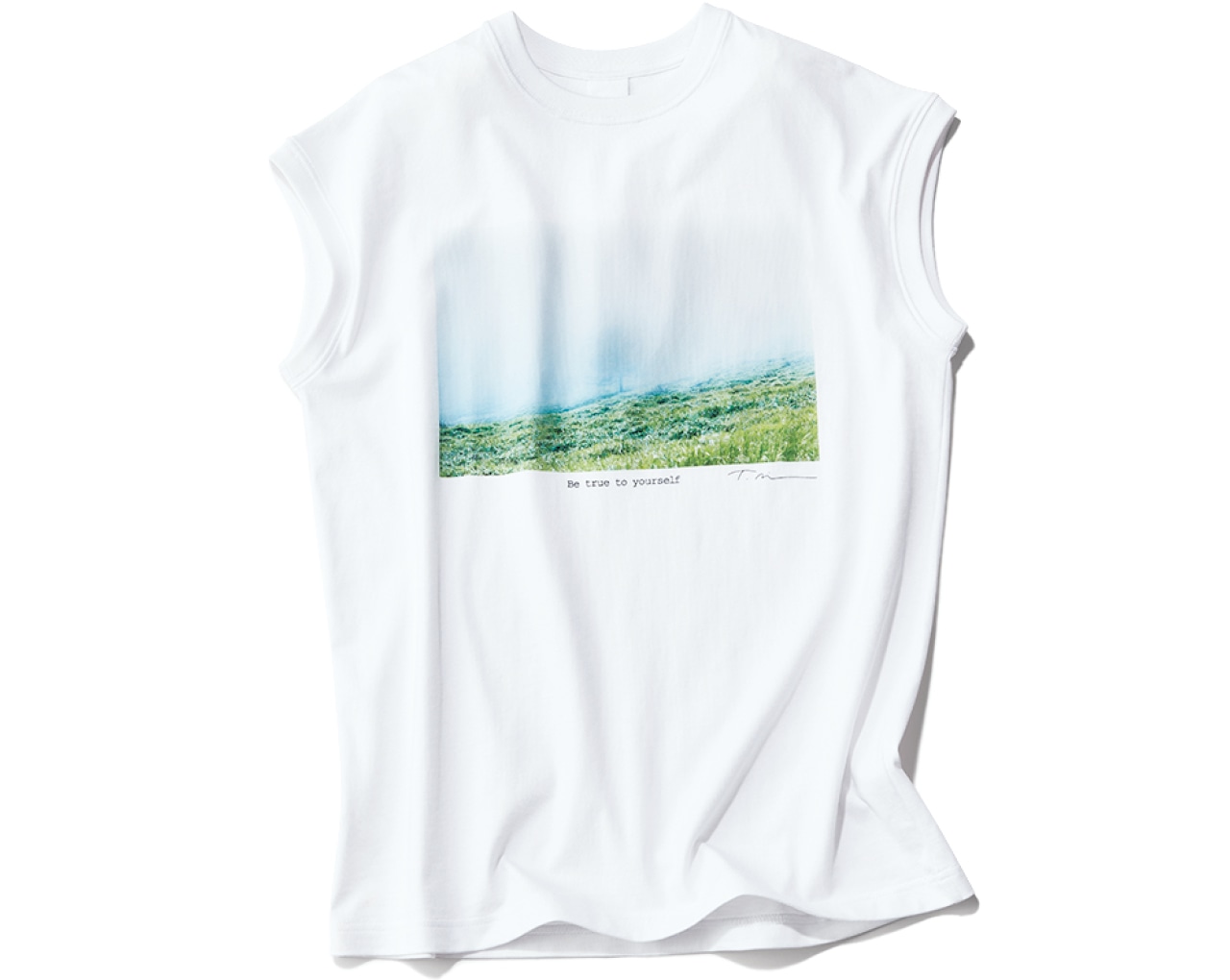 根っからのカジュアル派で、暑い夏は特にラクな服装が好き――そんな私が確実に着たくなる3アイテムを作りました! Tシャツは、体型カバーを意識しフレンチスリーブ×ヒップまで隠れるややロング丈に。フロントには写真家の酒井貴生さんが撮影した美ヶ原の風景写真と、わが家の家訓『Be true to yourself(自分に正直に/ありのままに)』の言葉を入れました。アメスリ風ワンピースやレースカーデも、着るだけでコーデが決まるよう、シルエットやデザインにとことんこだわったので、身支度がラクになるはず。肩の力を抜いてゆるっと着ていただけたら幸いです!