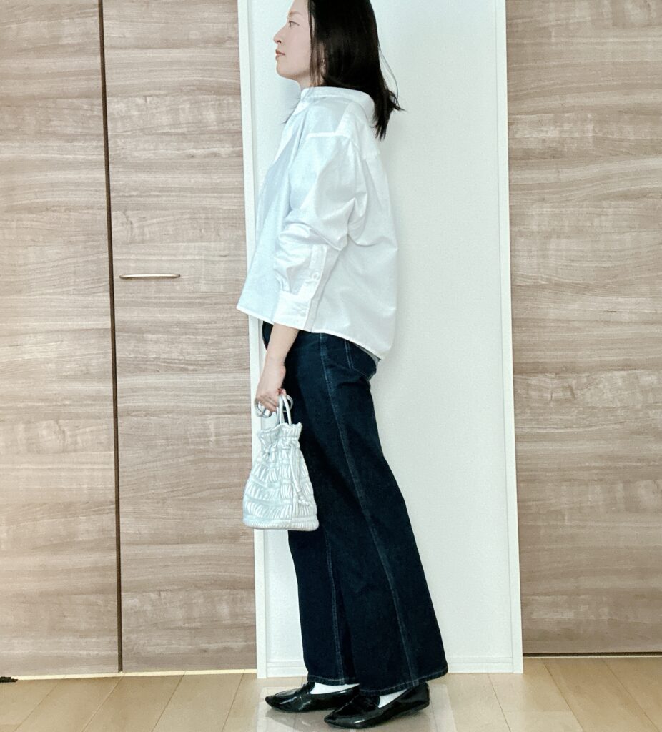 「オーバーサイズが得意でなく、ジャストサイズだとビジネス感が出てしまい、白シャツはわたしにとって難しいアイテムの一つでしたが、こちらは試着室で思わずおぉ!と声が漏れました(笑)。