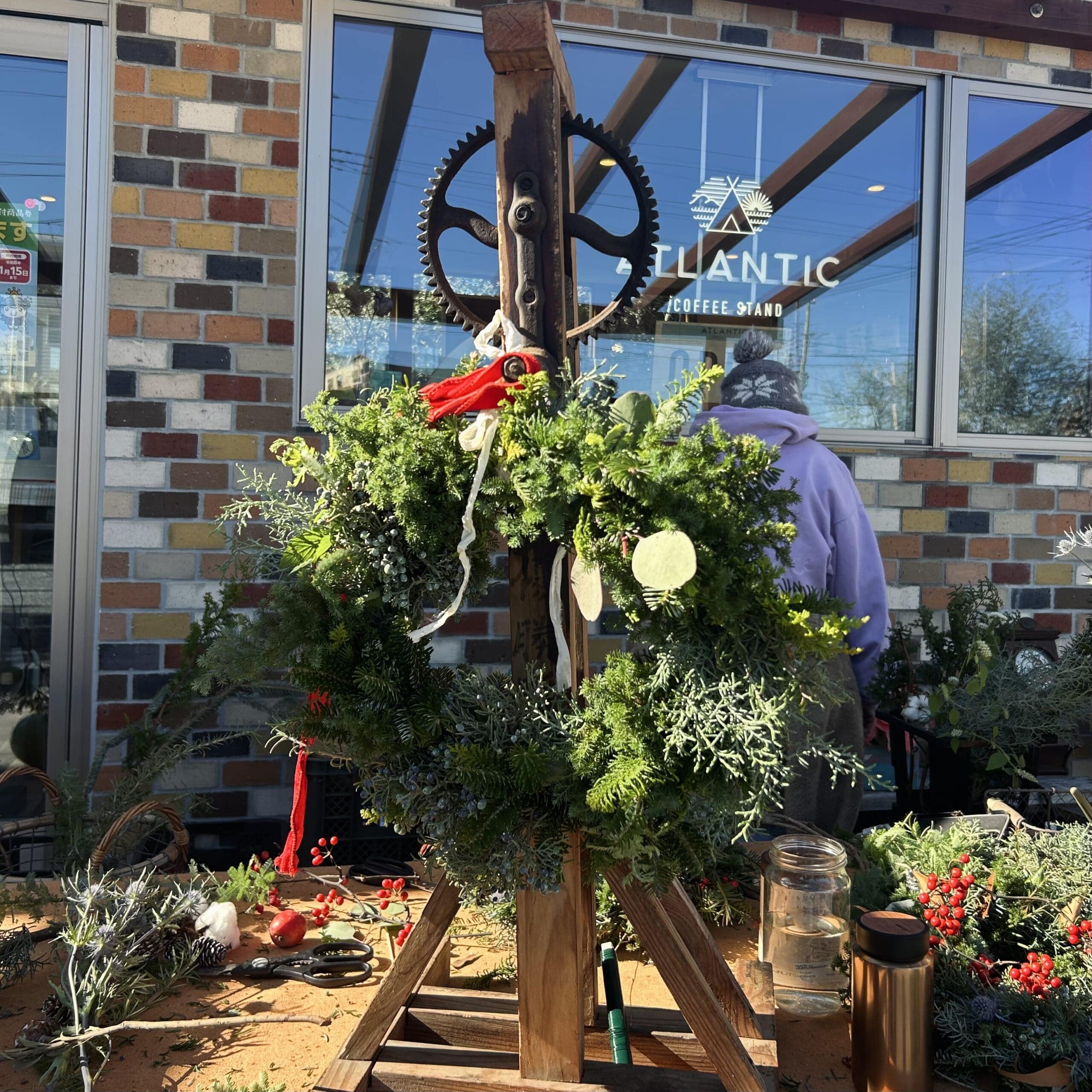 グリーン香る『クリスマスリース』のワークショップに参加しました。余った花材でガーランドも!