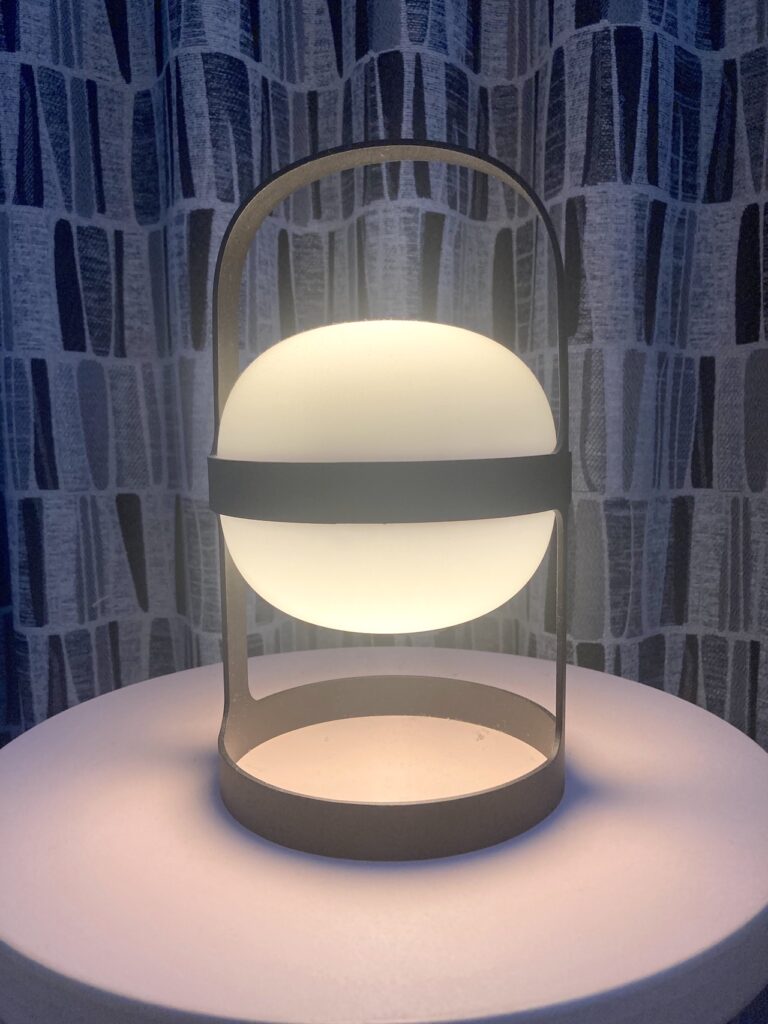 普段はベッドサイドに置いて就寝前に灯し、夜中にトイレに行くとき(加齢とともに夜中トイレに行くことが増えてきました涙笑)持ち歩くことが多いですが、来客時や週末のチルタイムにはダイニングやリビングも持ち運んで使用することも。柔らかく暖かい色の灯りに癒やされます。