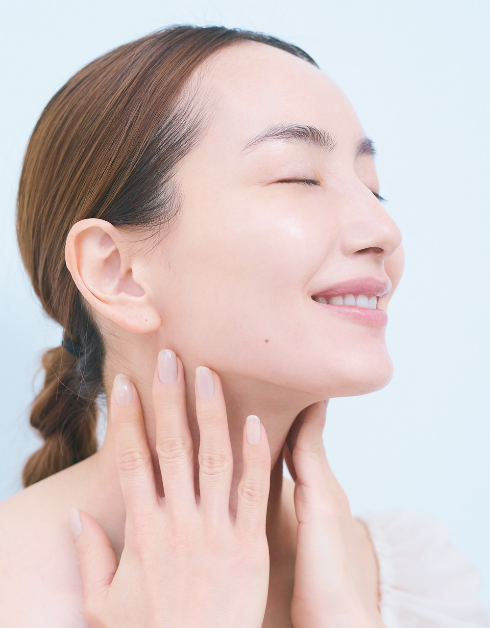 下地は日焼け止めも兼ねているから、案外シミやくすみが出現しやすい耳や首の後ろも漏れなく塗るのがポイント。耳の後ろまで忘れずに!