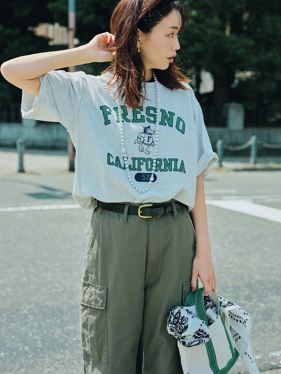 「ベルト選びに迷ったら、ちょっと特徴のあるバックルをチョイスしてみて。意外とどんな着こなしにも合ううえ、カジュアルコーデがぐっと引き締まるんです」