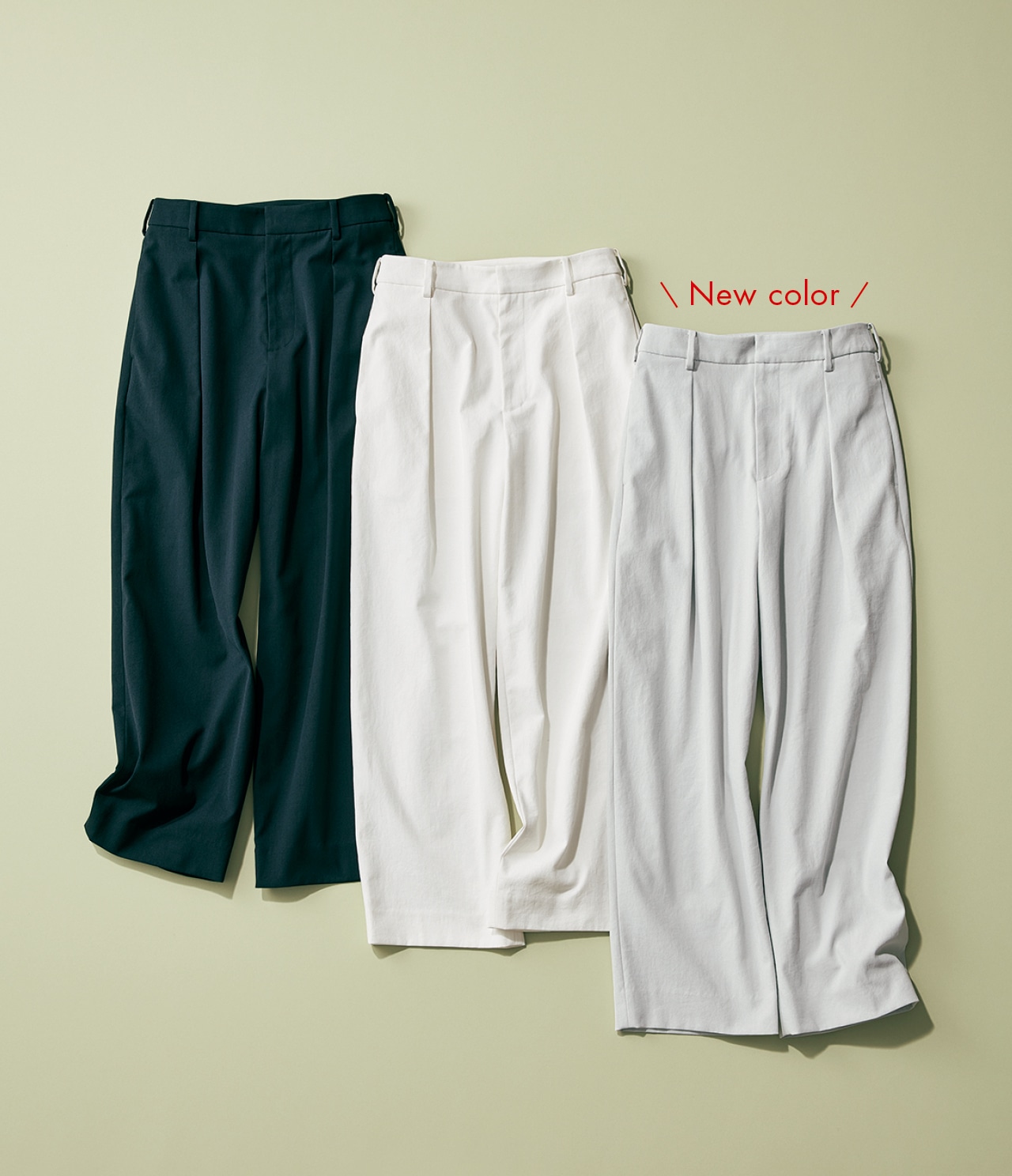 通勤にお出かけに、毎日大活躍! 大人気の美脚タックパンツの新色が登場