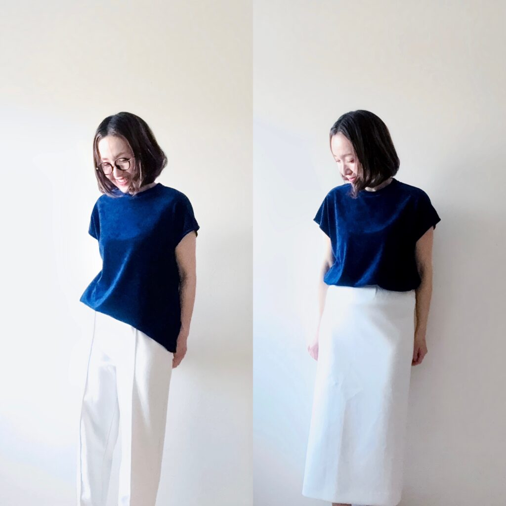 コーデを取ってみたものの、全く変わり映えがしなかったので、白パンツバージョン、白スカートバージョンで写真をまとめました。安定のネイビー×白コーデです。迷ったらこれですね。