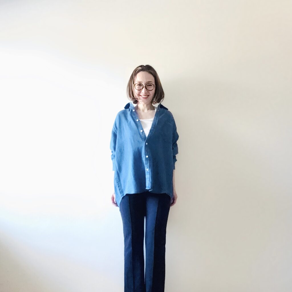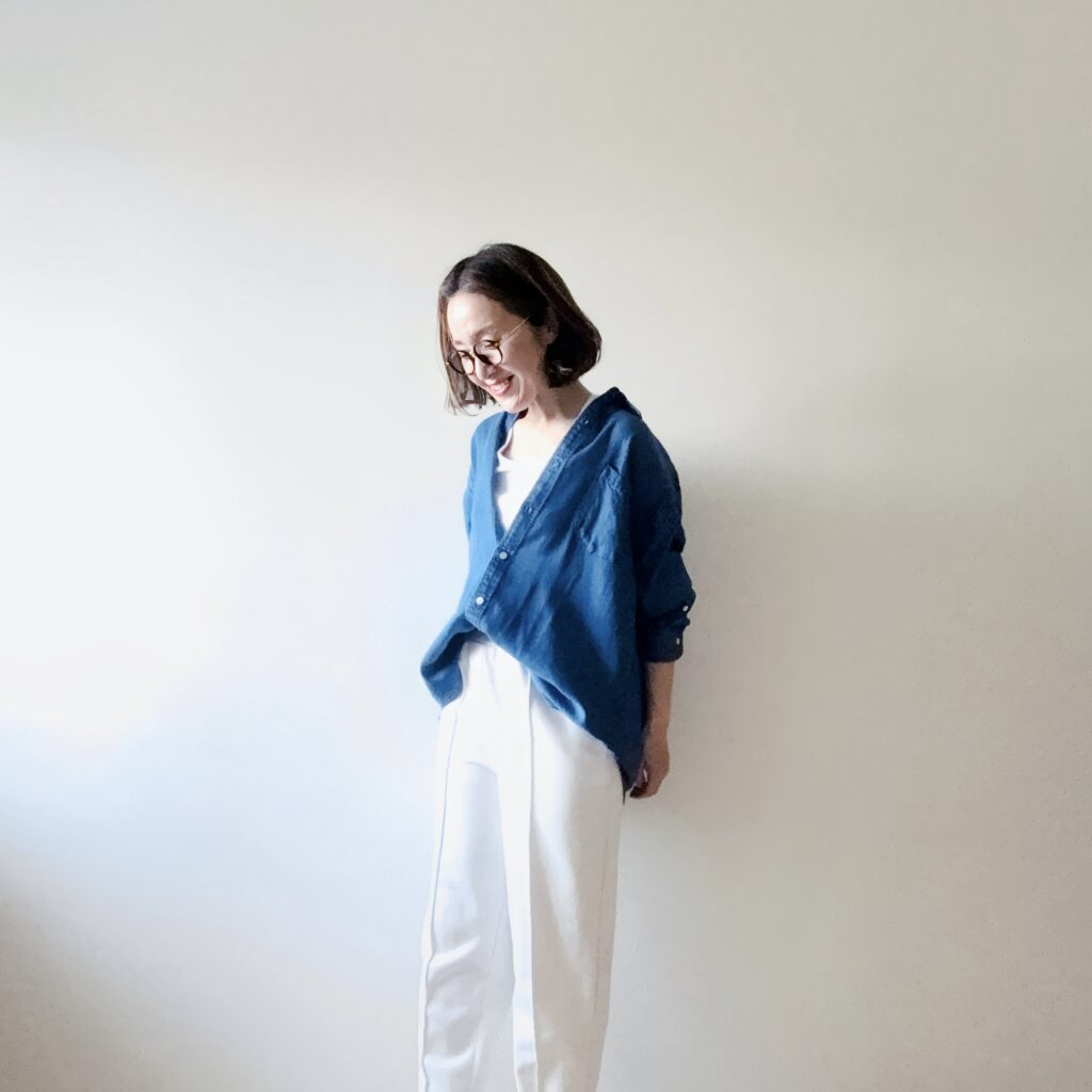 このコーデがしたくて購入したようなものです。オールホワイトにポイントでデニムシャツを投入!初夏コーデで大変爽やかな気持ちになります。