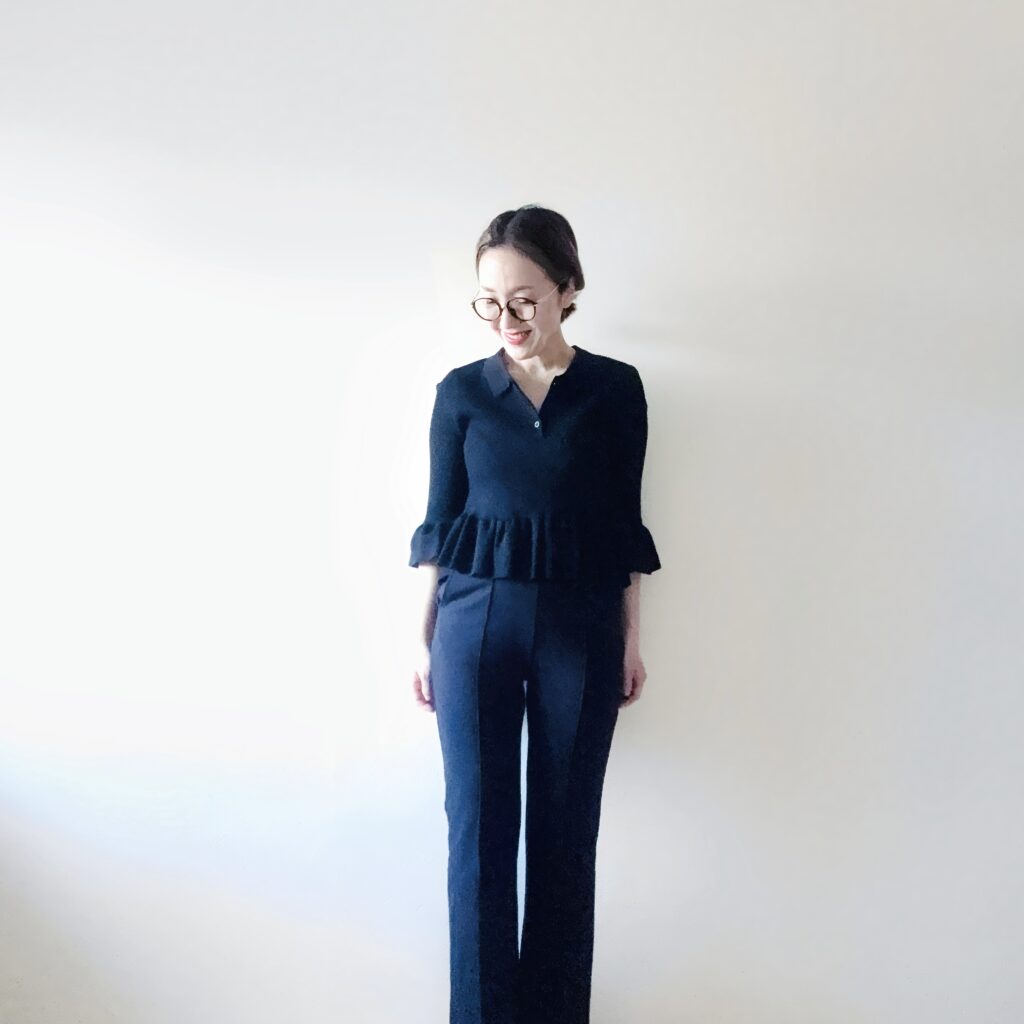 パンツをネイビーにすると落ち着いた印象になるので、お仕事コーデにも活躍させようと思います。