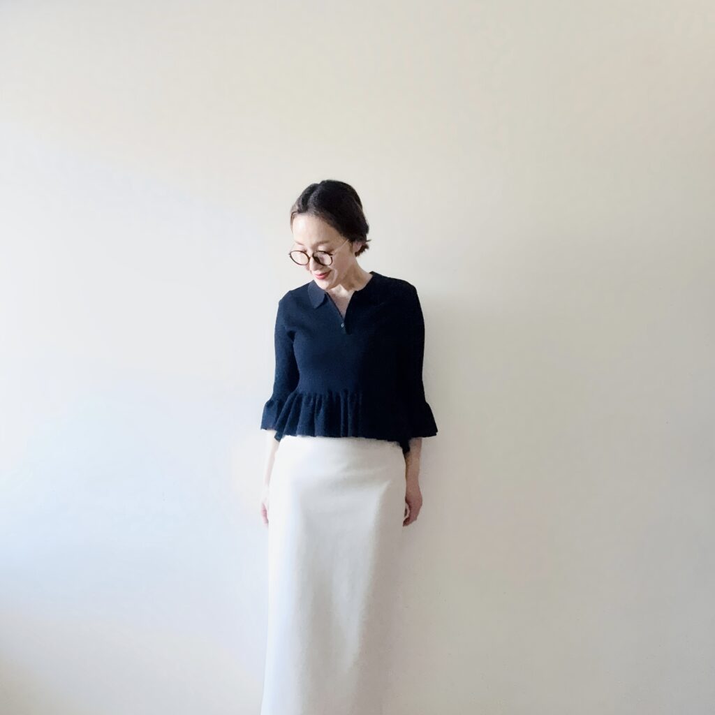 ネイビーのトップスはやっぱり合わせやすくて好きです。余談ですが、この春から転職して、事務職になりました。服を選ぶポイントが前とは少し変わりましたが、現状にあった服選びをこれからも楽しんでいけたらと思っております。