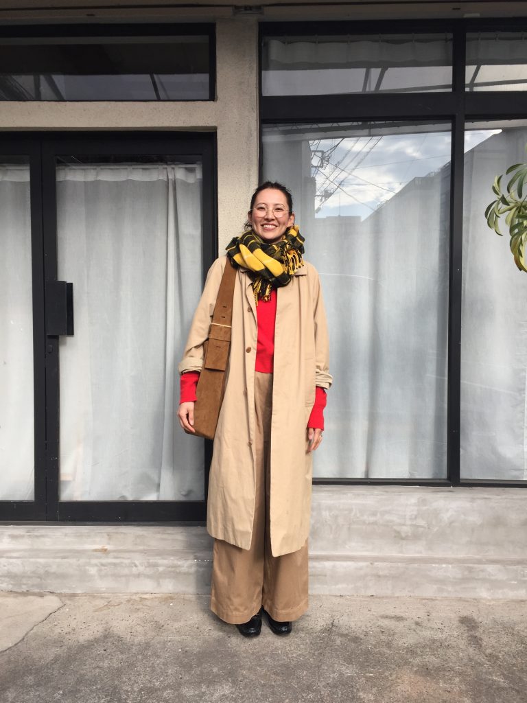 最近は冬のコートにも飽きてきて、このヤエカのメンズのトレンチコートを引っ張り出して着ています。