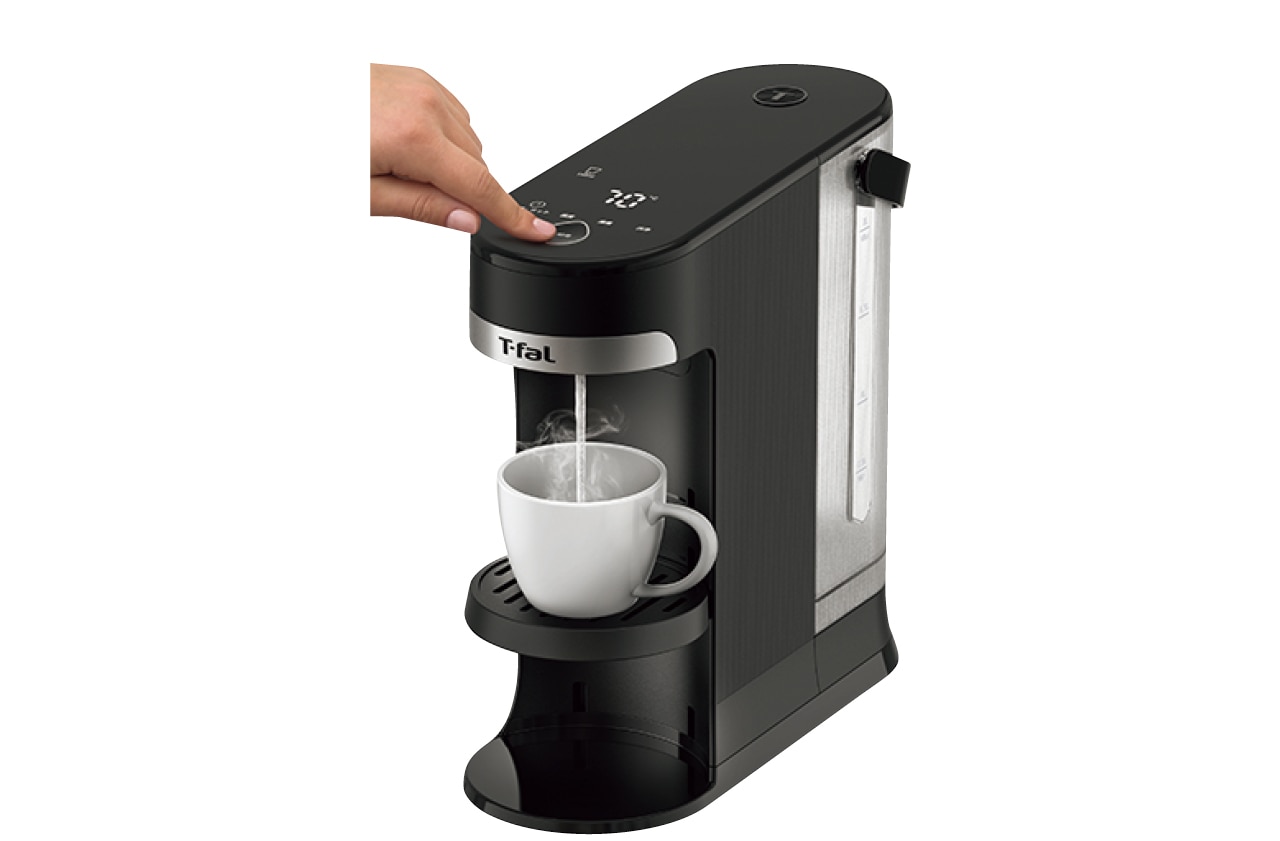 給湯ボタンを押すと、瞬間的にお湯が沸き、飲みたいときにすぐお湯を注げる画期的アイテム。