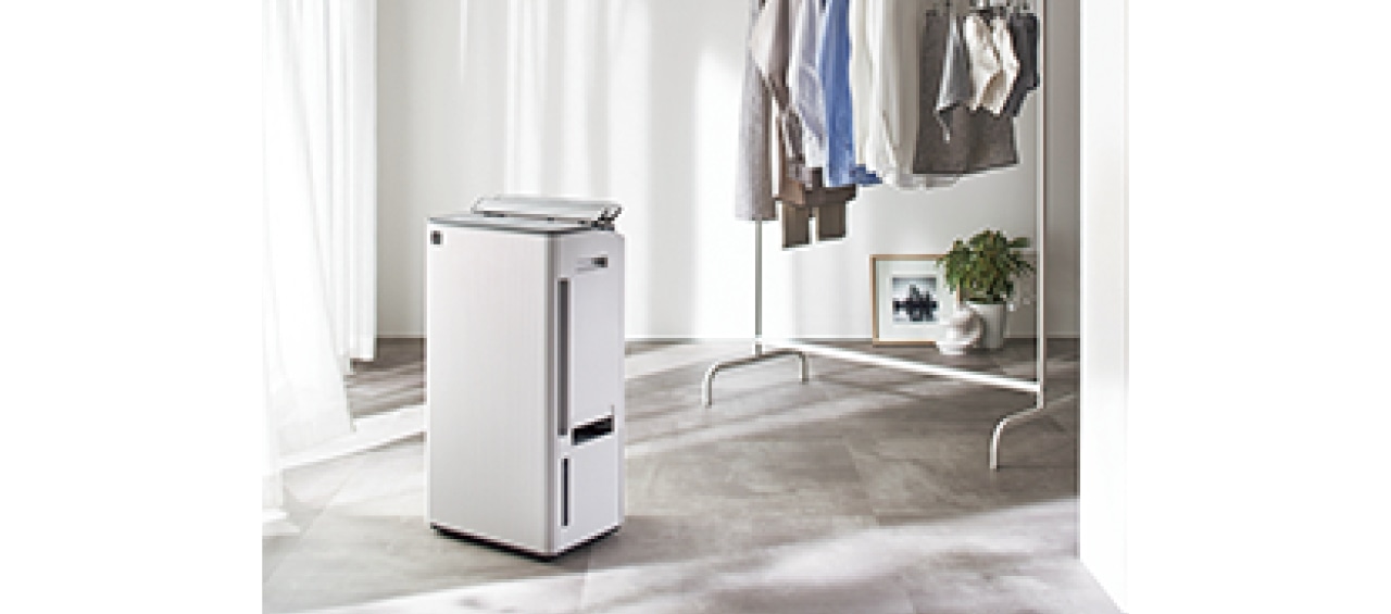 1日あたり18.5Lの高い除湿能力と、約2㎏の洗濯物を最短74分で乾かすことができる速乾性能が魅力。高性能ながら低騒音。プラズマクラスター搭載で、気になる部屋干し臭も消臭。