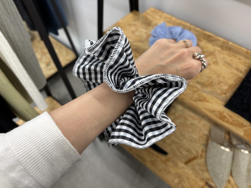 甘すぎず、どこか清涼感を感じさせるギンガムチェックのシュシュは、日常のスタイルにさりげなく華やかさをプラスしてくれます。髪を結んで使うのはもちろん、手首に巻いてブレスレットとして楽しむのもおすすめ。ちょっとしたアクセントとして、コーディネートを一気に引き立ててくれうはず。