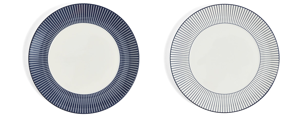 デザインは3パターン。ハニカム柄のエンボス模様が施され、ブルーの縁取りがアクセントになった「ライン」、ピンストライプ模様を描いた「ピンストライプ ホワイト/ブルー」で、全16アイテムがラインナップ。「『MAKE IT YOURS』― 組み合わせてつくる、私らしいテーブル」をテーマに、和洋中問わず料理を引き立てます。電子レンジや食洗機も使用可能なところもうれしいポイントです。