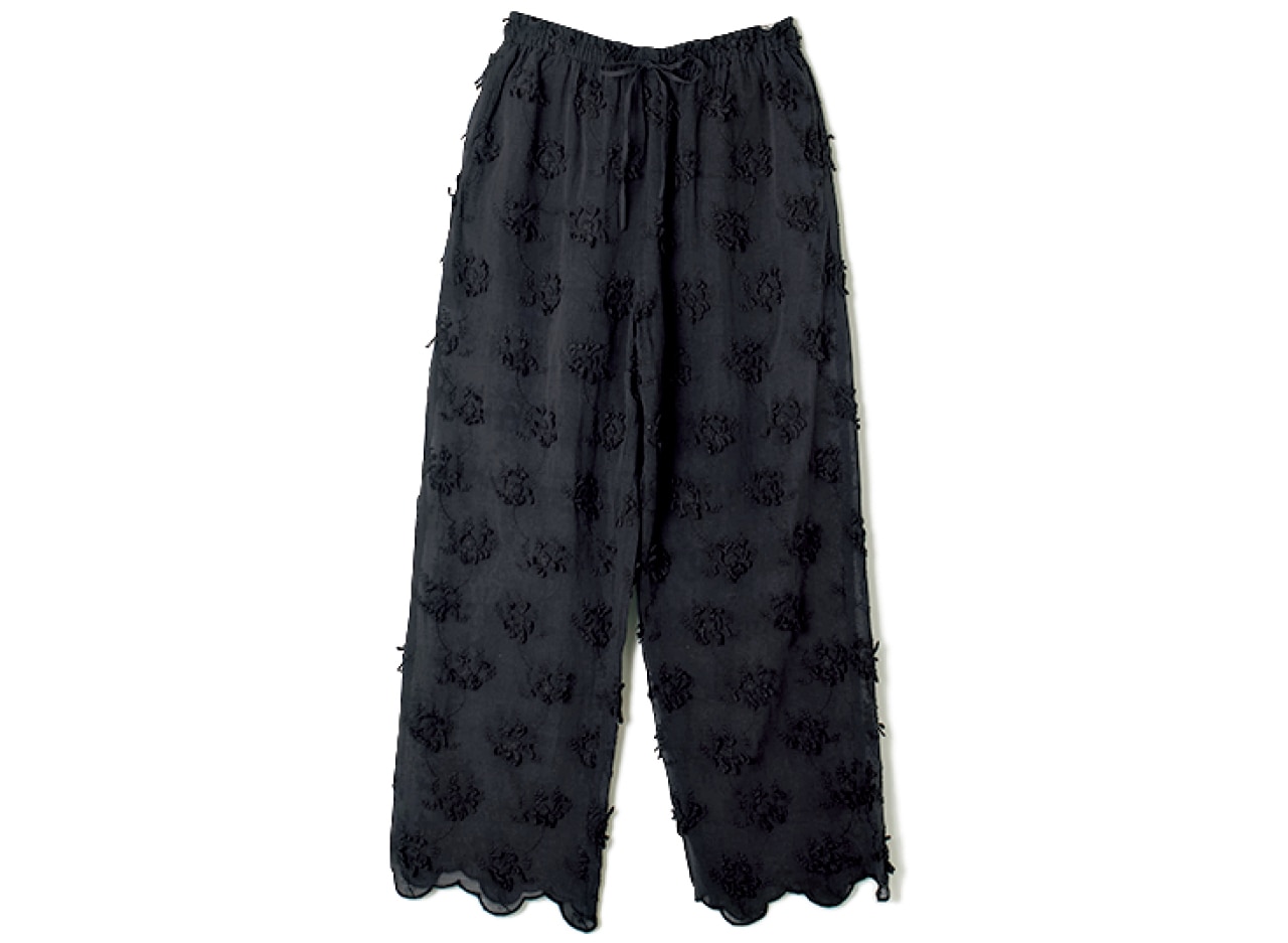 昨年以上にリアルトレンドとして浸透しているシアーパンツを、注目ブランドでセレクト! 生地はシグネチャーである3Dフラワー刺繍をたっぷりあしらった、コットン100%のテキスタイルを使用。ショーツにシアーパンツを重ねたような、ちょっぴりモードな印象のイージーパンツです。存在感がありつつも合わせやすいホワイトとブラックの2色展開。