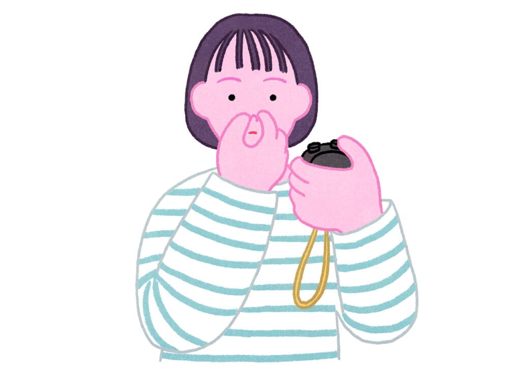 3 鼻をしっかりつまんで、ストップウォッチで計測スタート