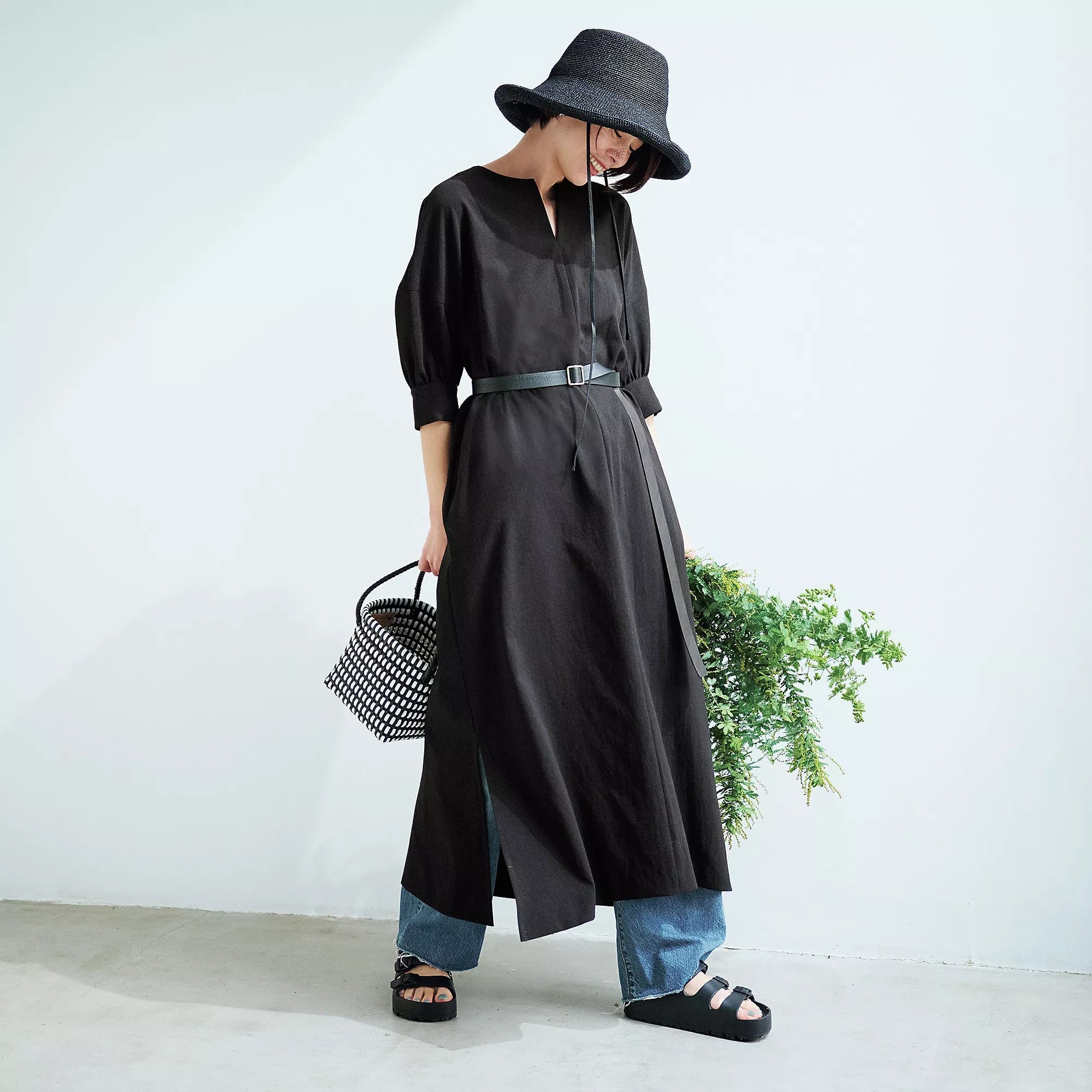 - ワンピース:12closet【福田麻琴さんコラボ】【洗える】リネン見えパフ袖ワンピース¥22,000