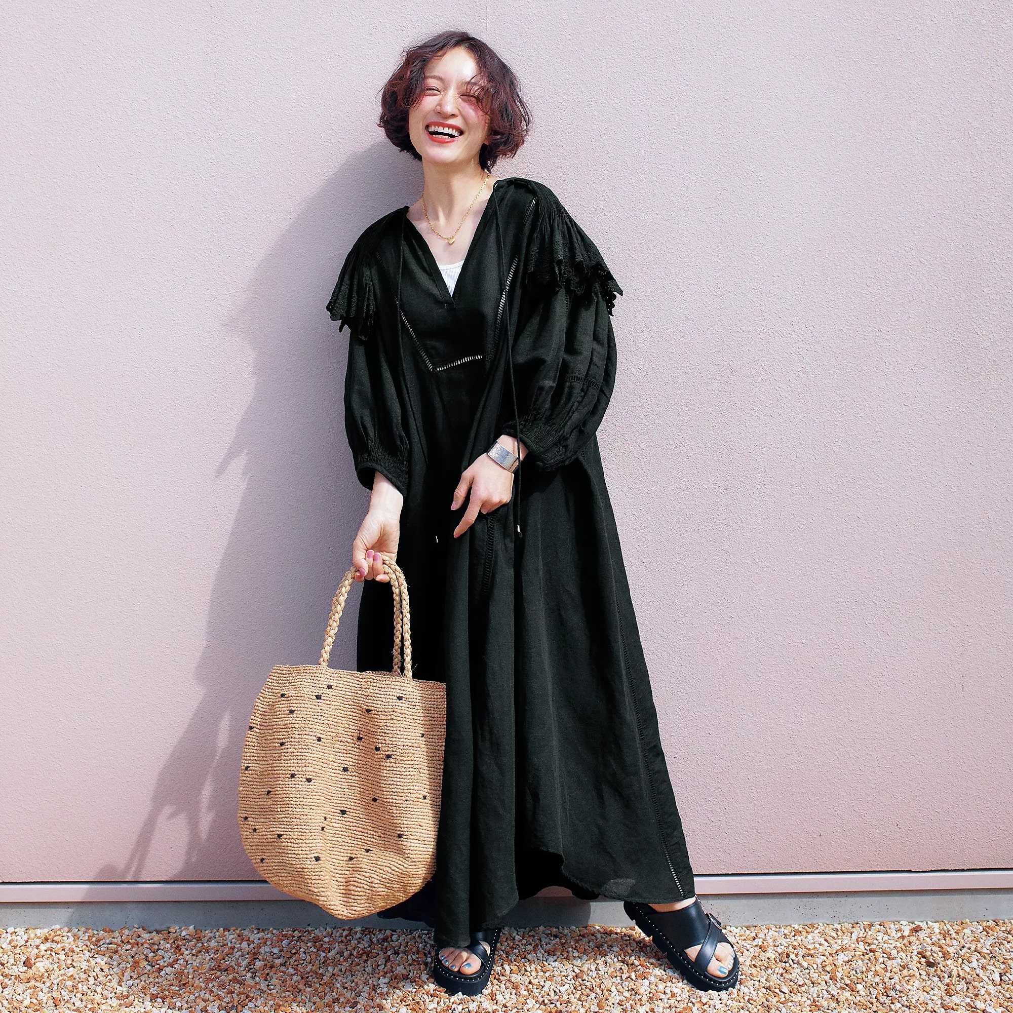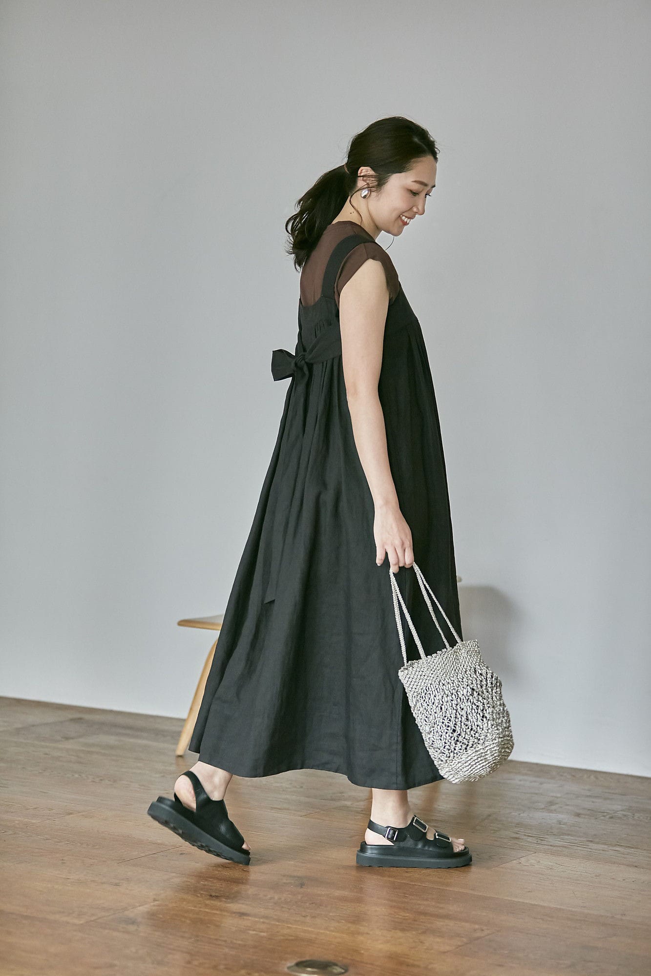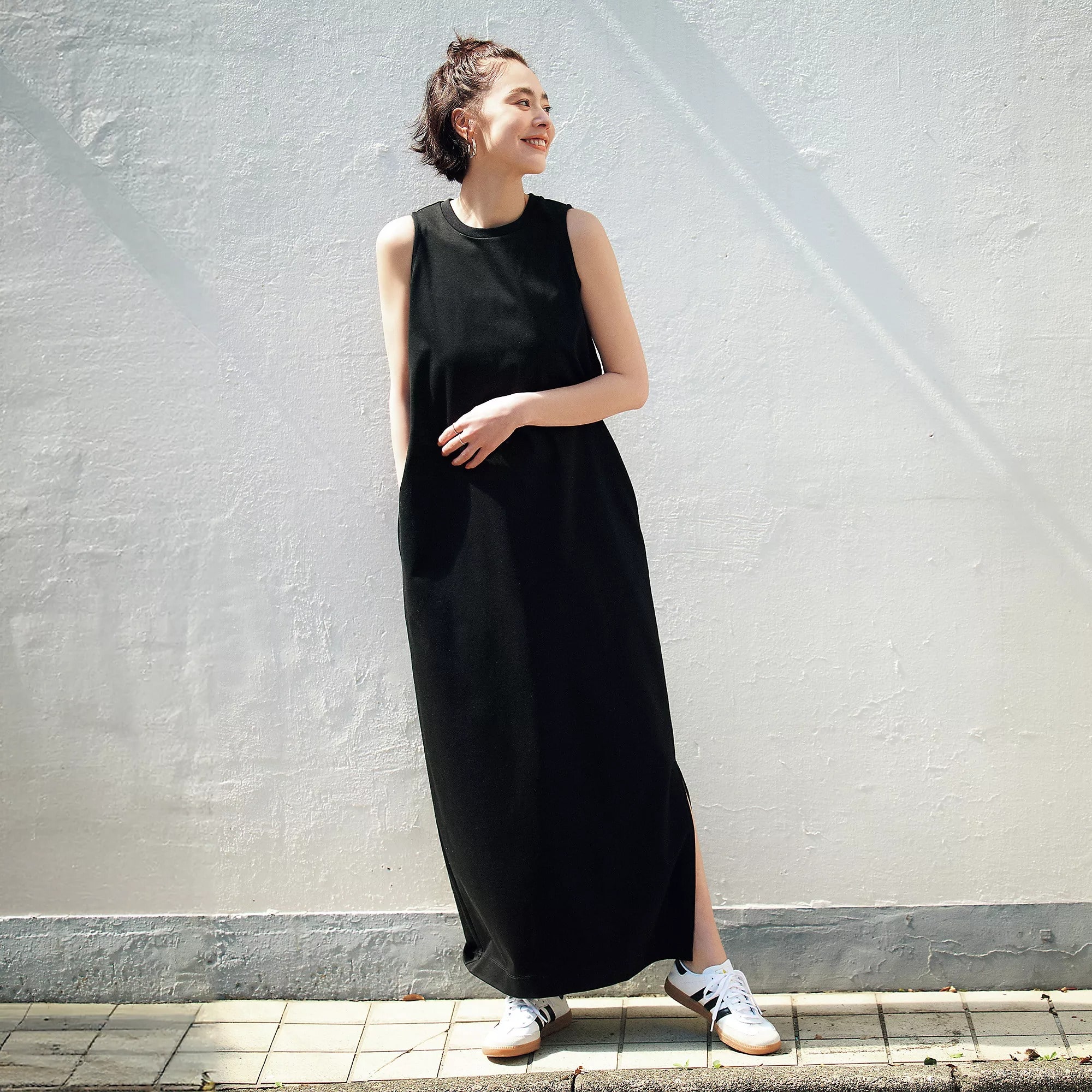 ノースリーブワンピでラクチンだけどスタイリッシュに