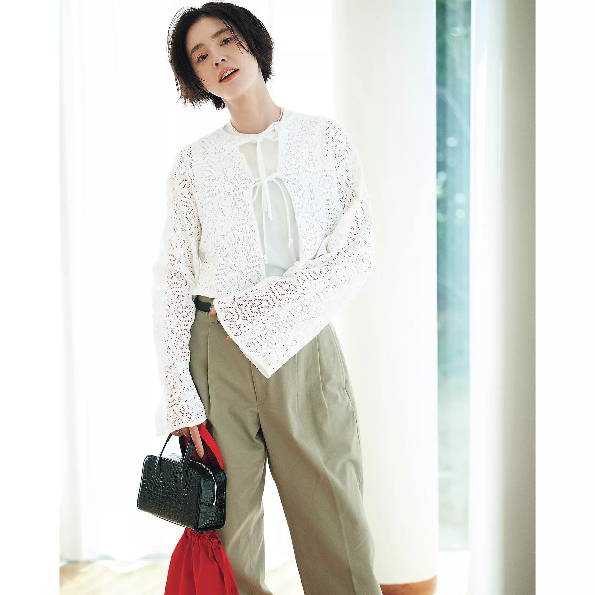 - カーディガン:12closet【浅見れいなさんコラボ】【洗える】ワイドスリーブレースカーディガン¥15,400