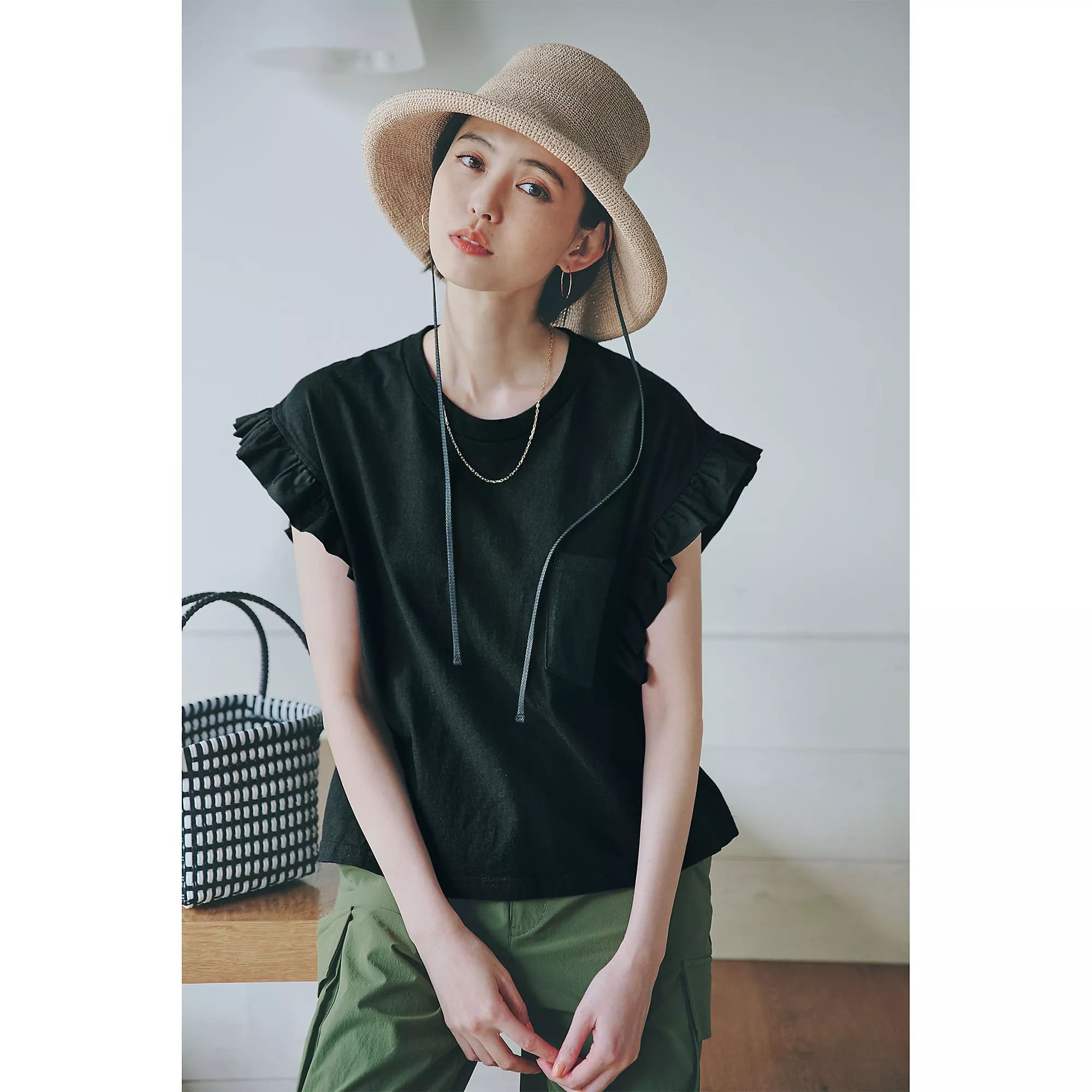 - トップス:12closet【福田麻琴さんコラボ】【洗える】リネン五分袖Tシャツ¥10,890