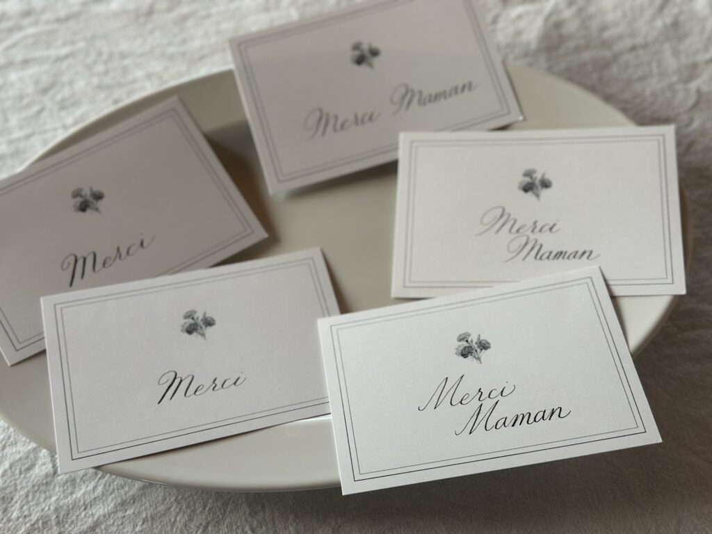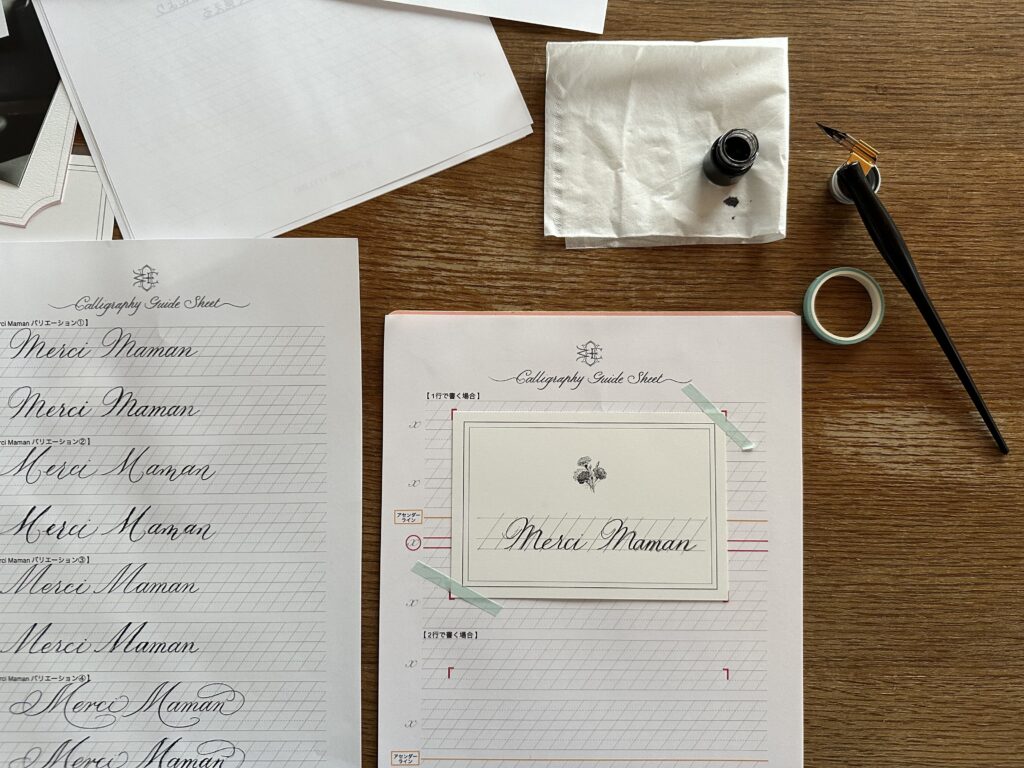 今回は母の日用のカード作りだったので、「Merci」の文字をたくさん練習しました。