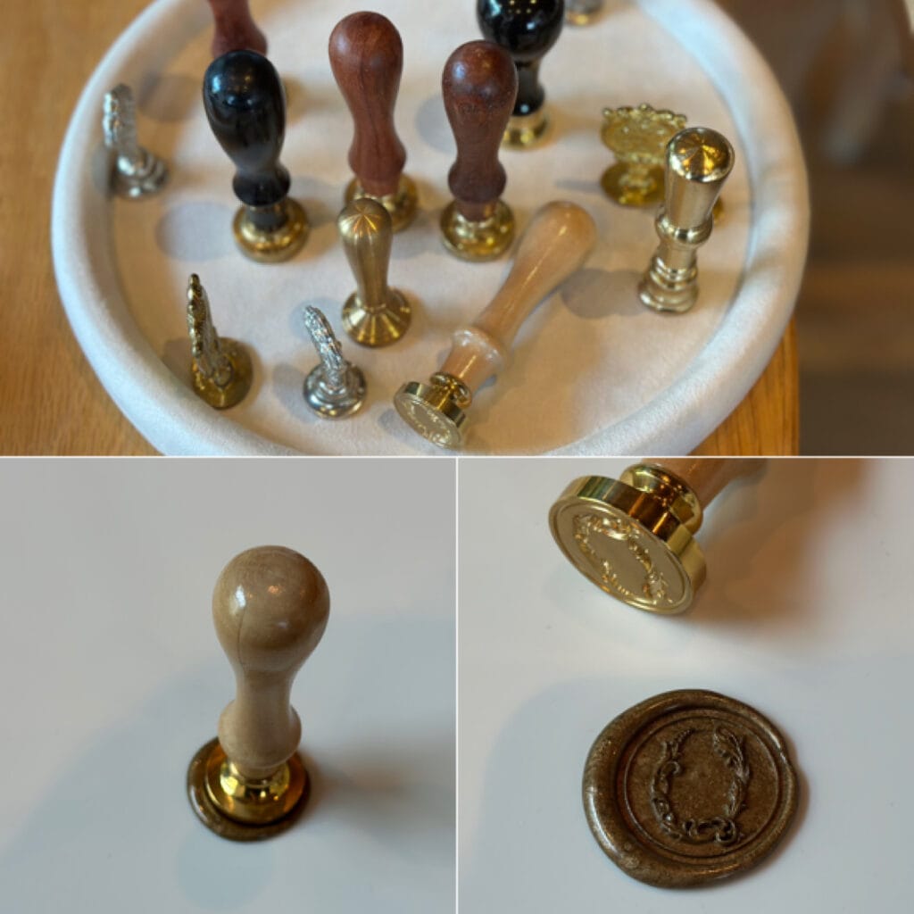 シーリングスタンプは、手紙や封筒に封印を施すために用いられた、ロウで作る立体の印鑑のこと。たくさんの中から1人2つのモチーフを選ぶのは迷いましたが、私はリースと天使をセレクト。