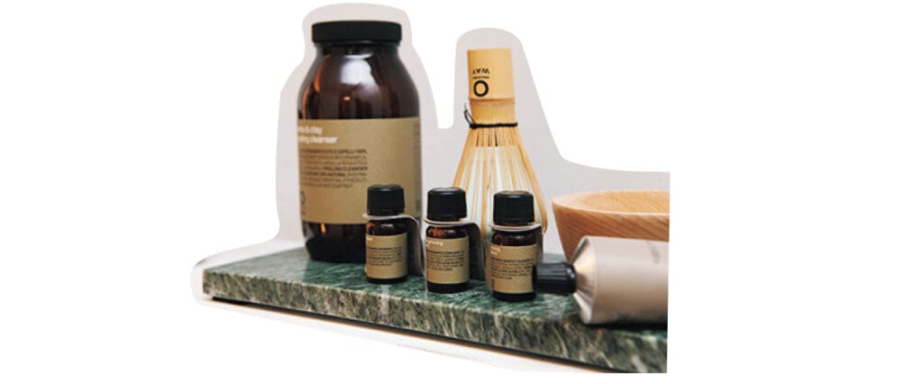 月の満ち欠けに合わせたエッセンシャルオイルの香りをかいだ後、酵素ピーリングを。