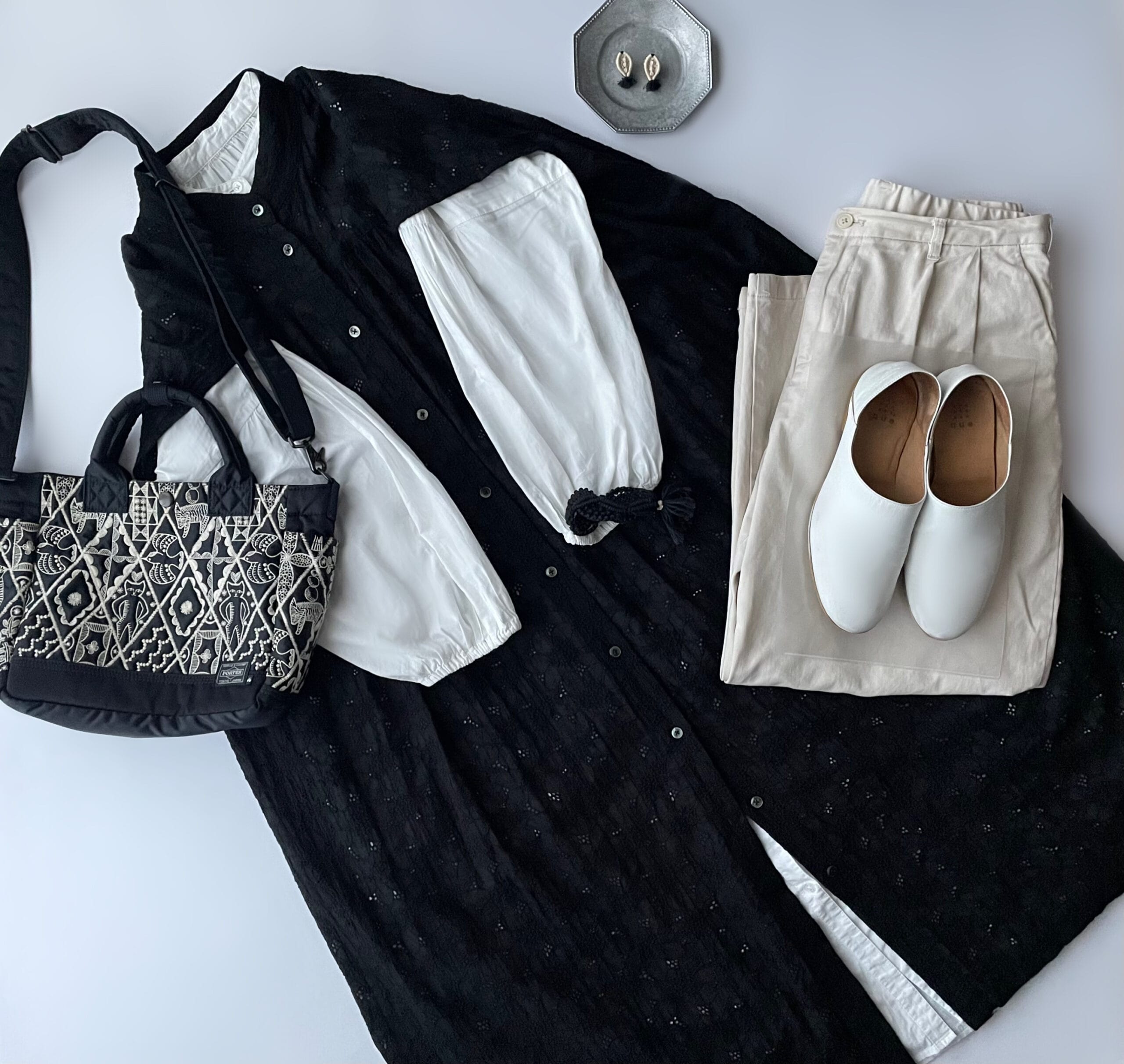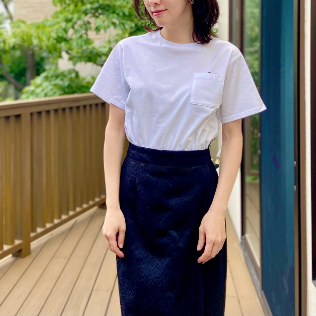 「カラーによって刺繍されているデザインが異なるのですが、わたしは胸元のポケットに惹かれて白にしました。ポケットからチラリ♡」