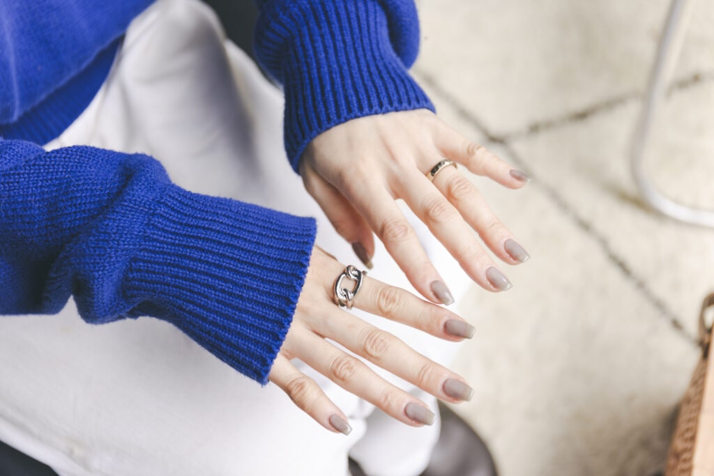 人差し指のリングは、パリの蚤の市で購入。日本円で500円くらいでした! 結婚指輪は鎌倉の市松のもの。オーダーメイドで、職人さんが1つ1つ手作りをするというところに惹かれました。
