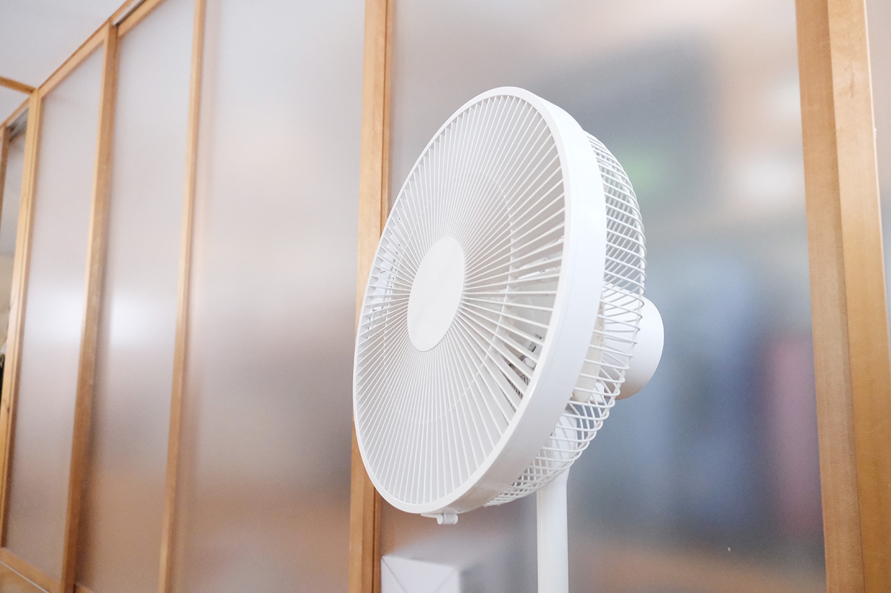 梅雨時期のジメジメで、エアコンはまだ早いなあ…って時に頼りになるのが、無印良品の「首振り範囲が調節できる DC扇風機」です。
