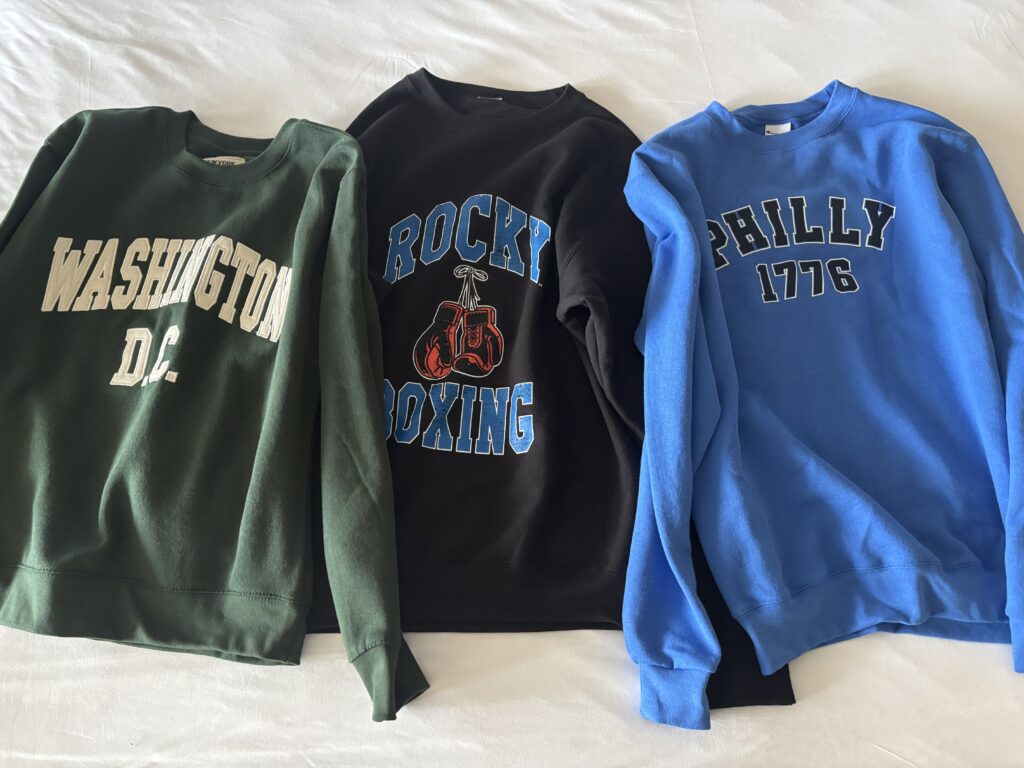 先日もご紹介しましたが、これから夏だというのにスウェットを爆買いしました。だって、可愛いんだもの。いちばん左は、乗り継ぎしたワシントンD.C.の空港内で。