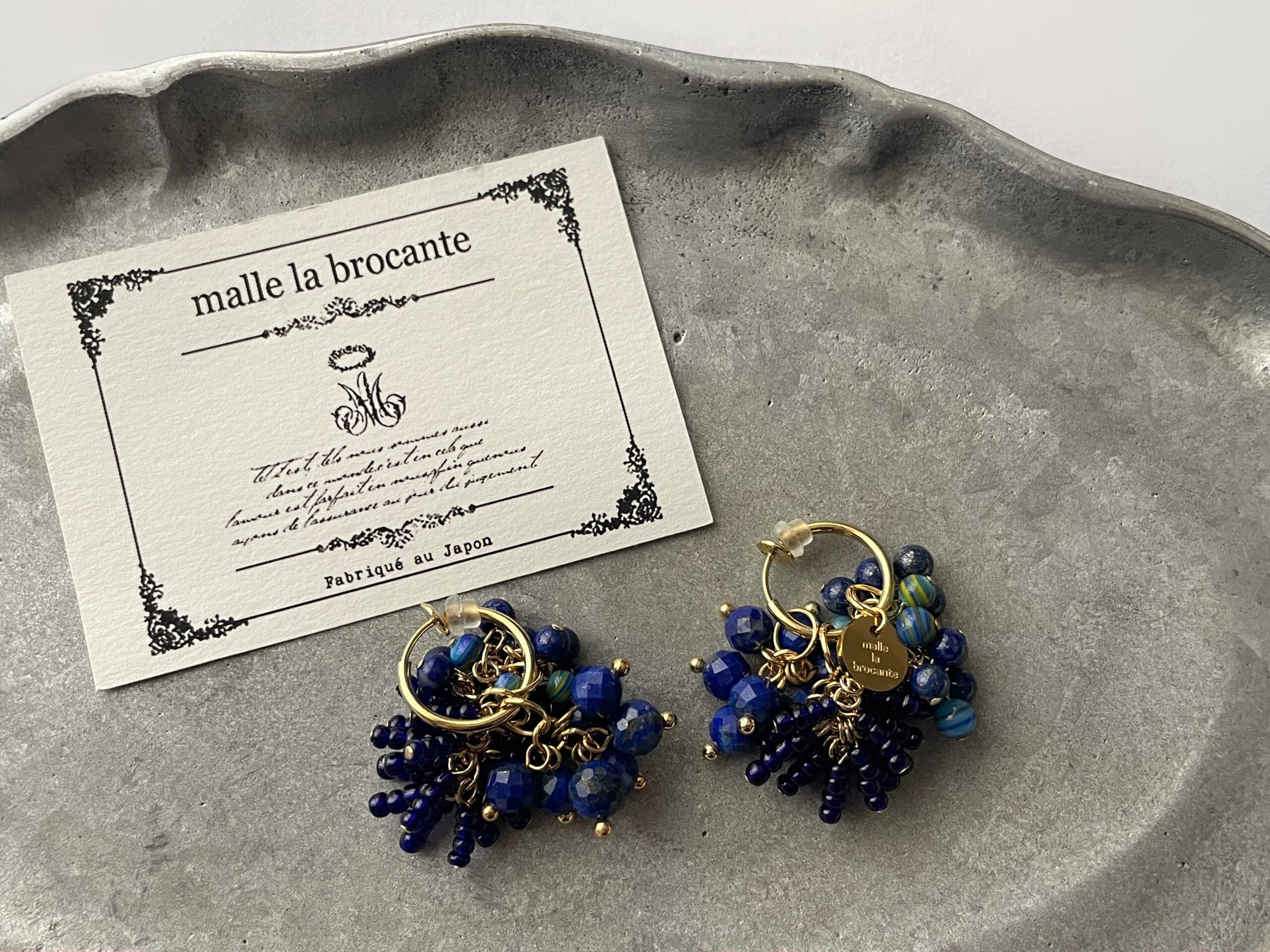 深い青の煌めきに魅せられて…。 【malle la brocante(マルラブロカント)】製作のイヤリングを再び購入! 鳥取市境港市を拠点にヴィンテージパーツと天然石を使ったハンドメ