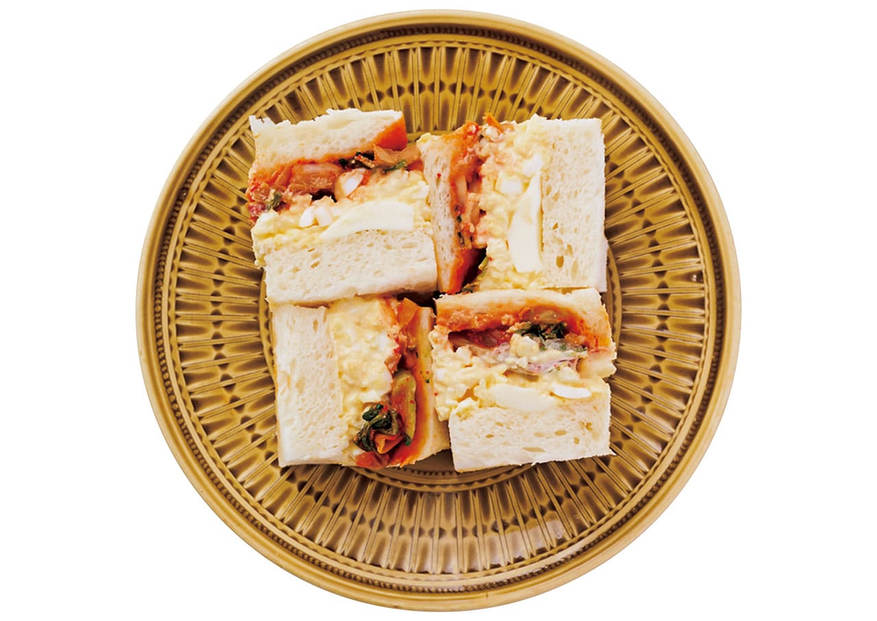 「まろやかな卵ペーストにキムチを合わせると、キリッとメリハリのきいたおいしさに。卵とマヨネーズのコクで辛さが和らぐので、お子さんもおいしく食べられます。どこまでもやさしい卵サンドもいいけれど、キムチが加わるとちょっと複雑な味わいと食感が生まれるんです」(今井真実さん)