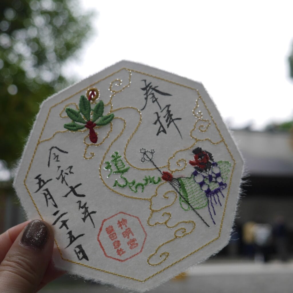 最近では筆で書いていただく御朱印の他に、予め文字や絵が書かれた書き置きをいただく場合、神社オリジナルの御朱印など様々なものがあります。こちらの阿佐ヶ谷神明宮では刺繍入りの御朱印がとっても可愛くて乙女心(?)くすぐられます♡」